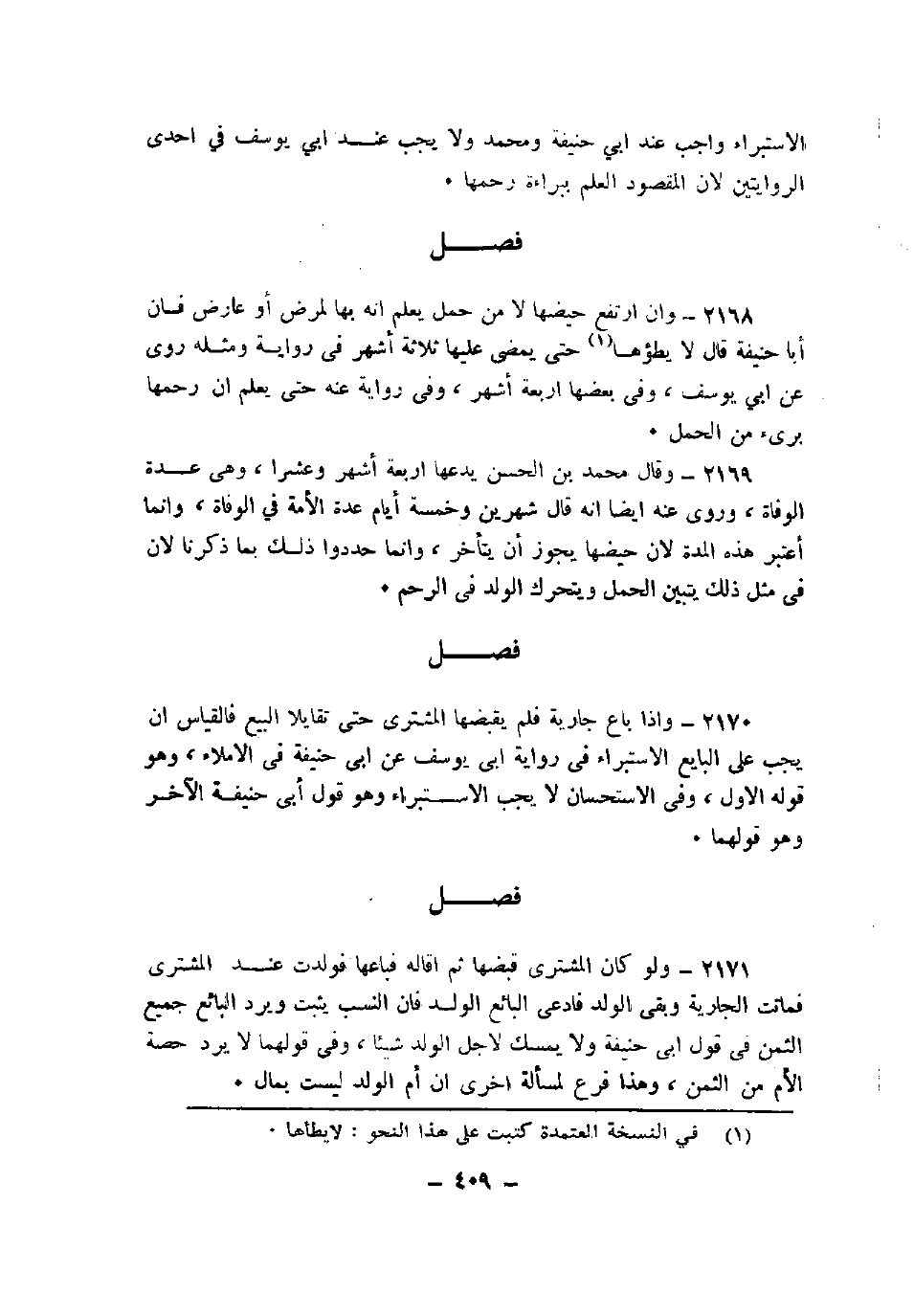 2171 - ولو كان المشتري قبضها ثم أقاله فباعها فولدت عند المشتري فماتت الجارية وبقة الولد فأدعى البائع الولد فأن النسب يثبت ويرد البائع جميع الثمن في قول أبي حنيفة ولا يمسك لأجل الولد شيئاً، وفي قولهما لا يرد حصة الأم من الثمن، وهذا فرع لمسألة أخرى أن أم الولد ليست بمال.