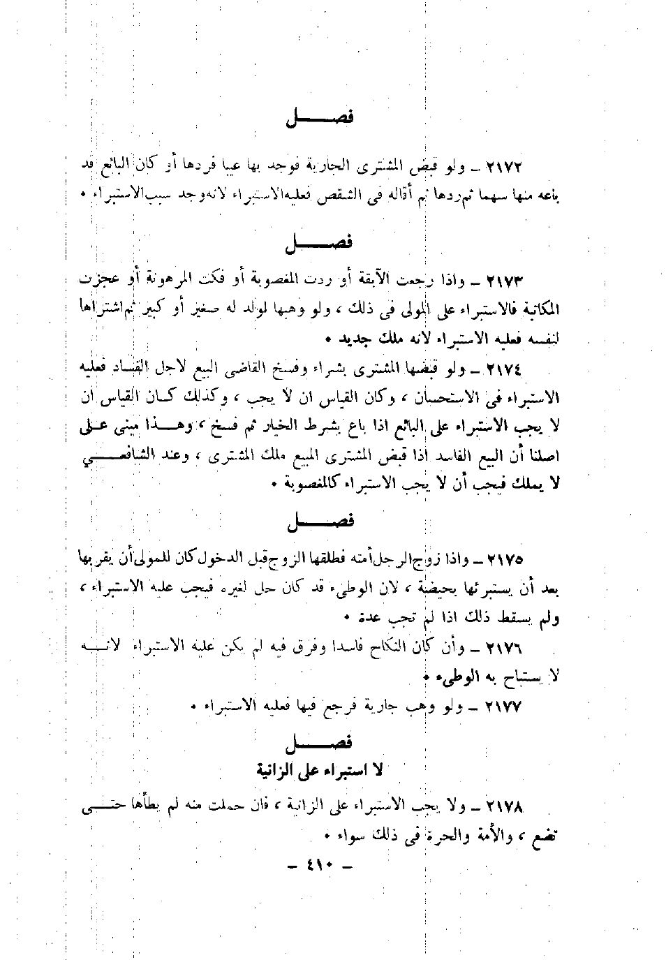 2176 - وأن كان النكاح فاسداً وفرق قيه لم يكن عليه الاستبراء لأنه لا يستباح به الوطئ.