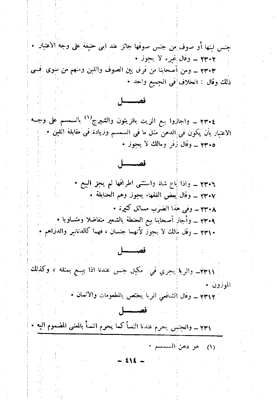 2304 - وأجازوا بيع الزيت بالزيتون والشيرج بالسمسم على وجه الاعتبار بأن يكون في الدهن مثل ما في السمسم وزيادة في مقابلة اللبن.