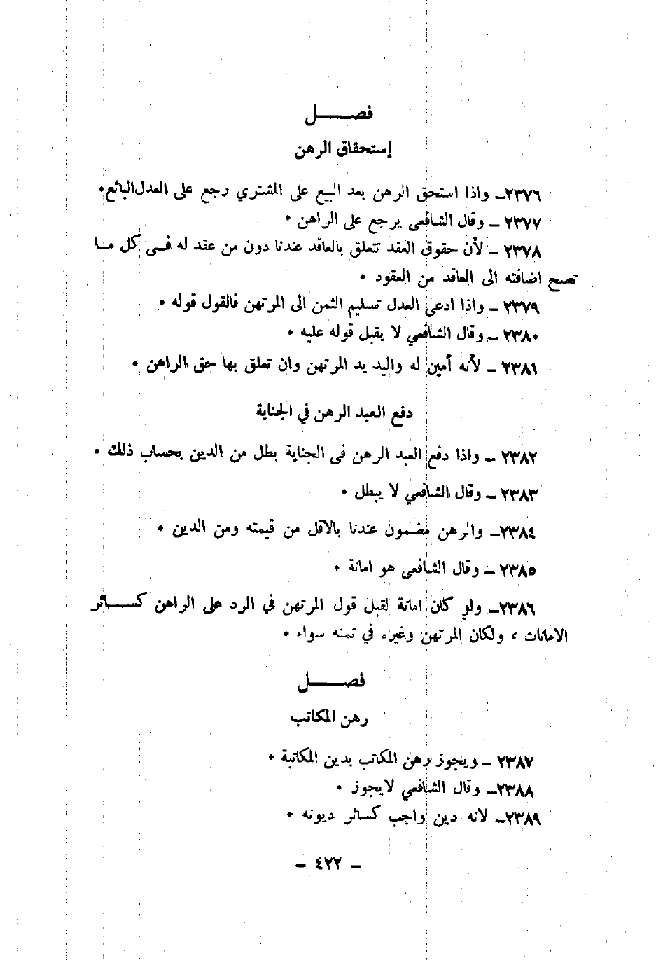 2384 - والرهن مضمون عندنا بالأقل من قيمته ومن الدين.