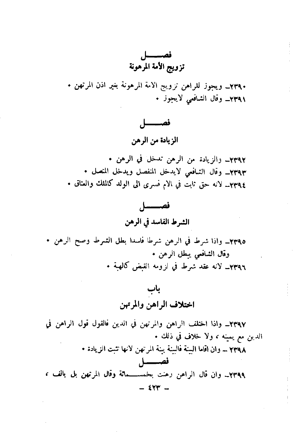 2390 - ويجوز للراهن تزويج الأمة المرهونة بغير أذن المرتهن.
