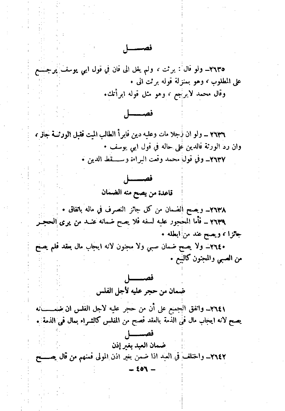 2641 - واتفق الجميع على أن من حجر عليه لأجل الفلس أن ضمانه يصح لأنه إيجاب مال في الذمة بالعقد فصح من المفلس كالشراء بمال في الذمة.
