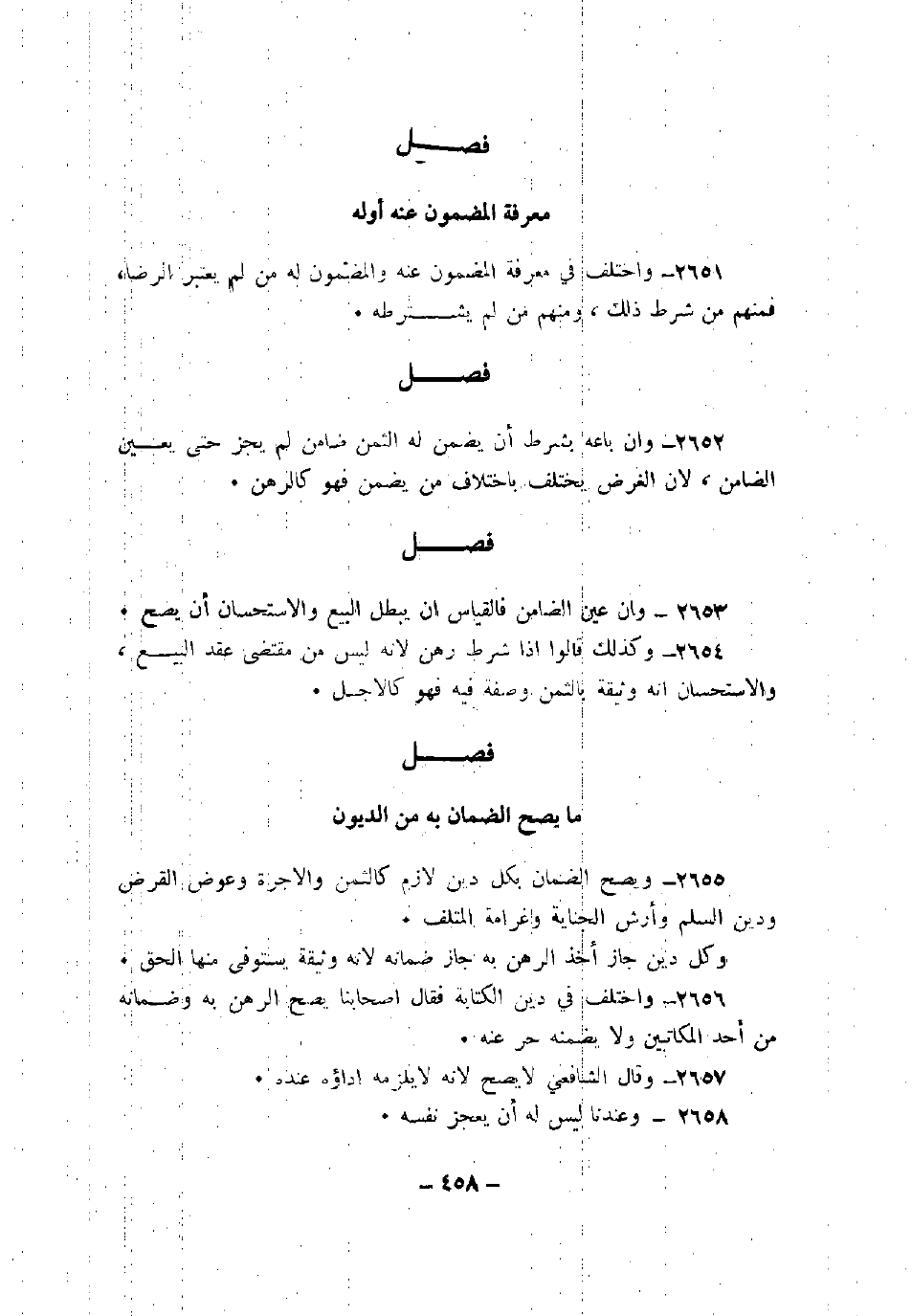 2651 - واختلف في معرفة المضمون عنه والمضمون له من لم يعتبر الرضا، فمنهم من شرط ذلك، ومنهم من لم يشترطه.