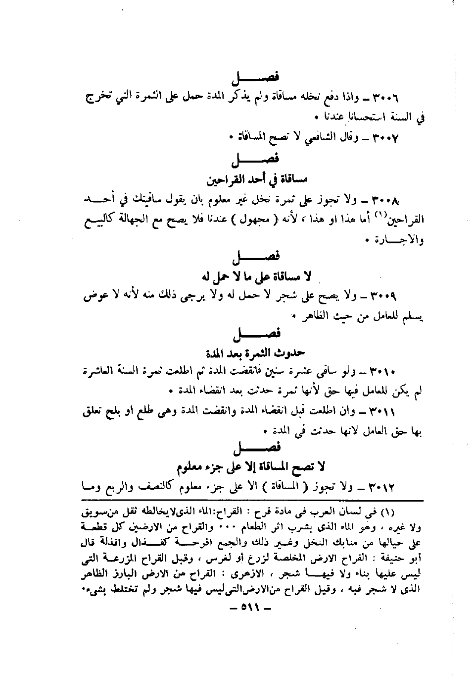 3012 - ولا تجوز (المساقاة) إلا على جزء معلوم كالنصف والربع وما