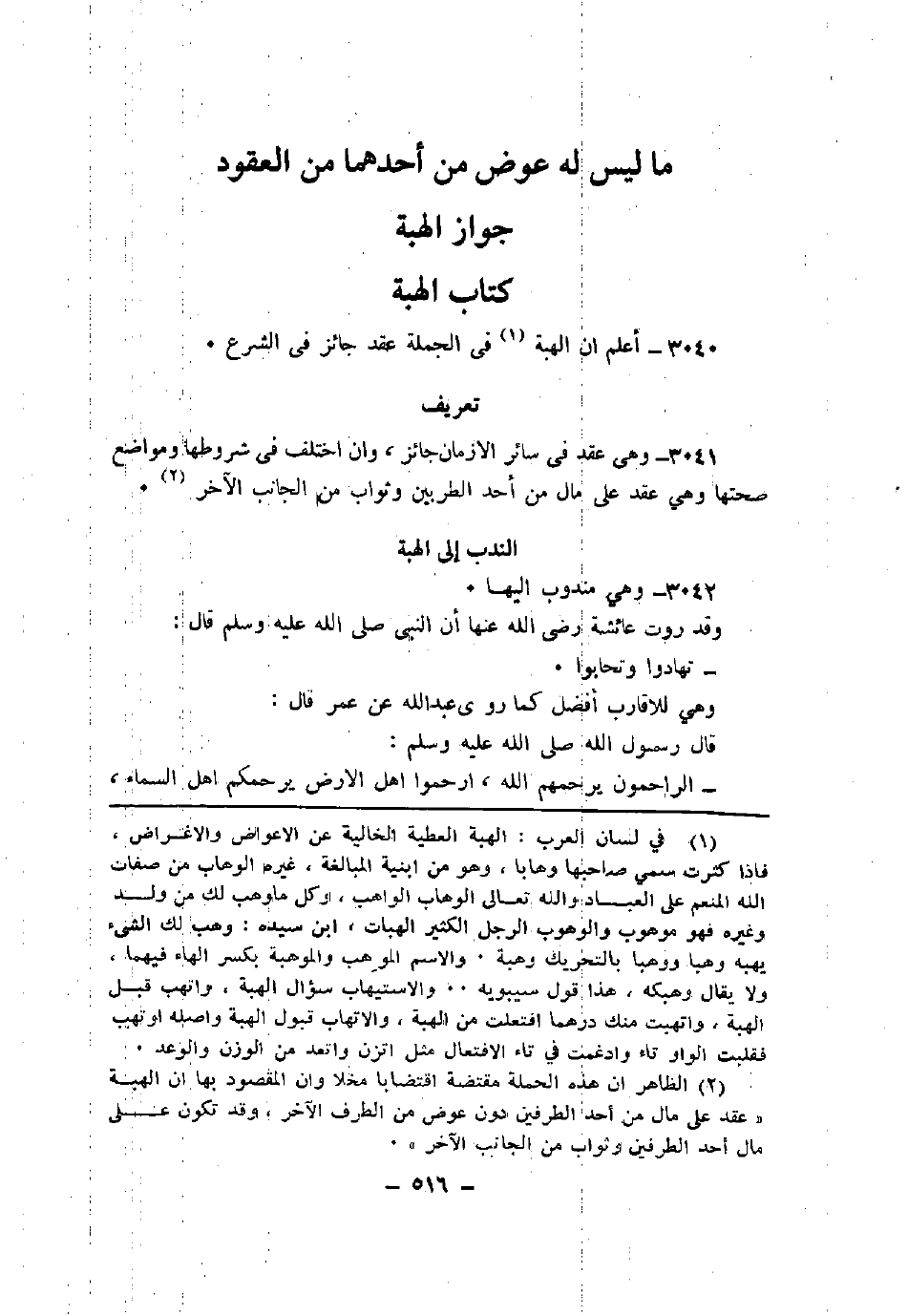 3040 - اعلم أن الهبة في الجملة عقد جائز في الشرع.