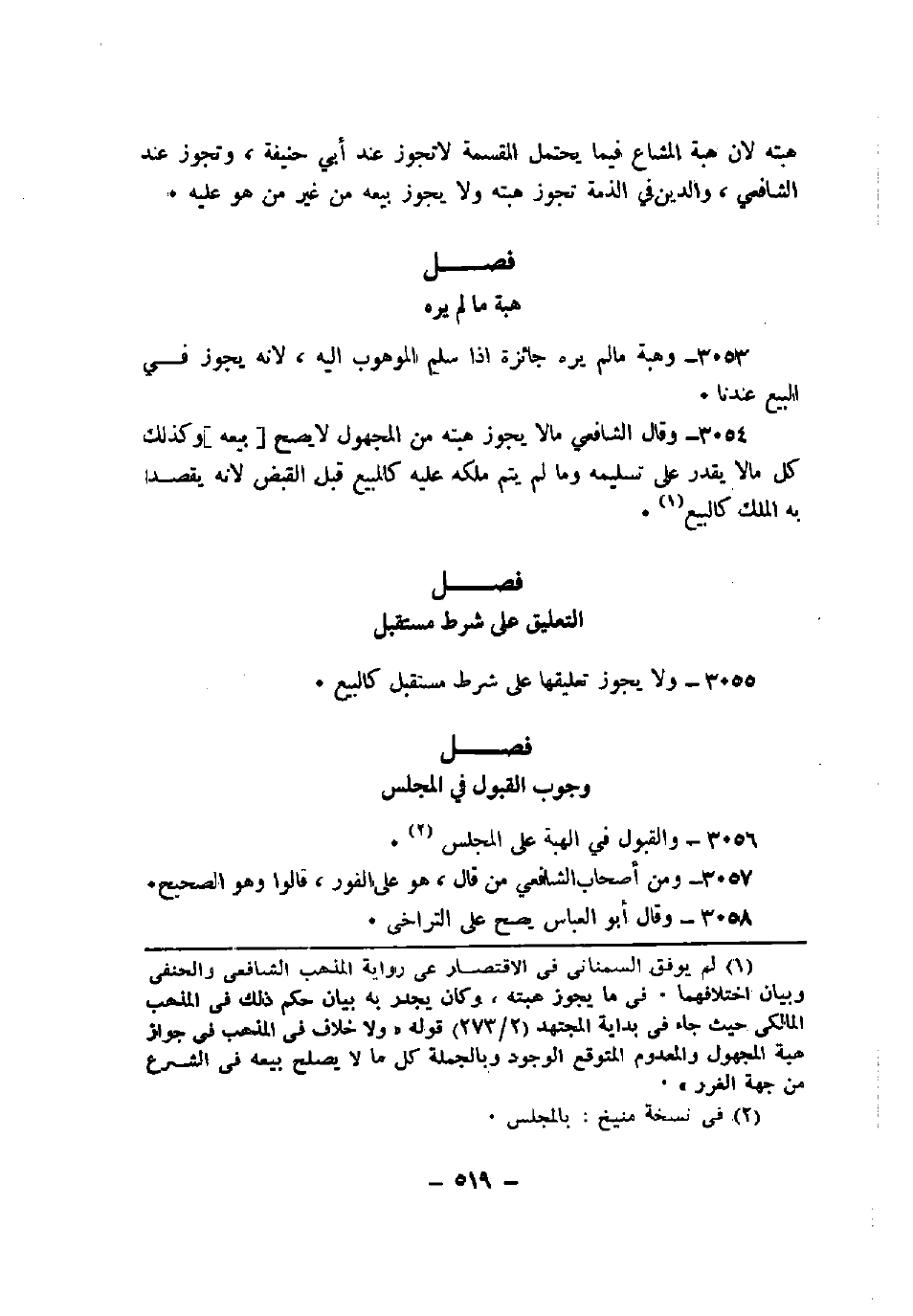 3055 - ولا يجوز تعليقها على شرط مستقبل كالبيع.
