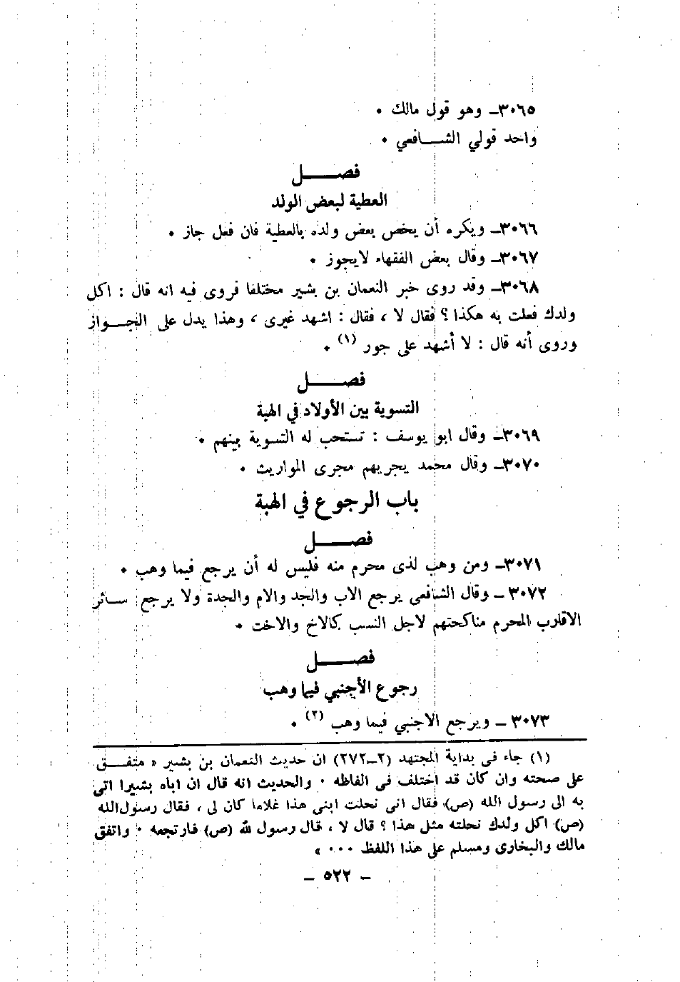 3068 - وقد روى خبر النعمان بن بشير مختلفًا فروى فيه أنه قال: أكل ولدك فعلت به هكذا؟ فقال لا، فقال: أشهد غيري، وهذا يدل على الجواز، وروى أنه قال: لا أشهد على جور.