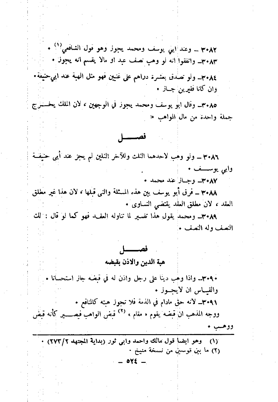 3086 - ولو وهب لأحدهما الثلث وللآخر الثلثين لم يجز عند أبي حنيفة وأبي يوسف.