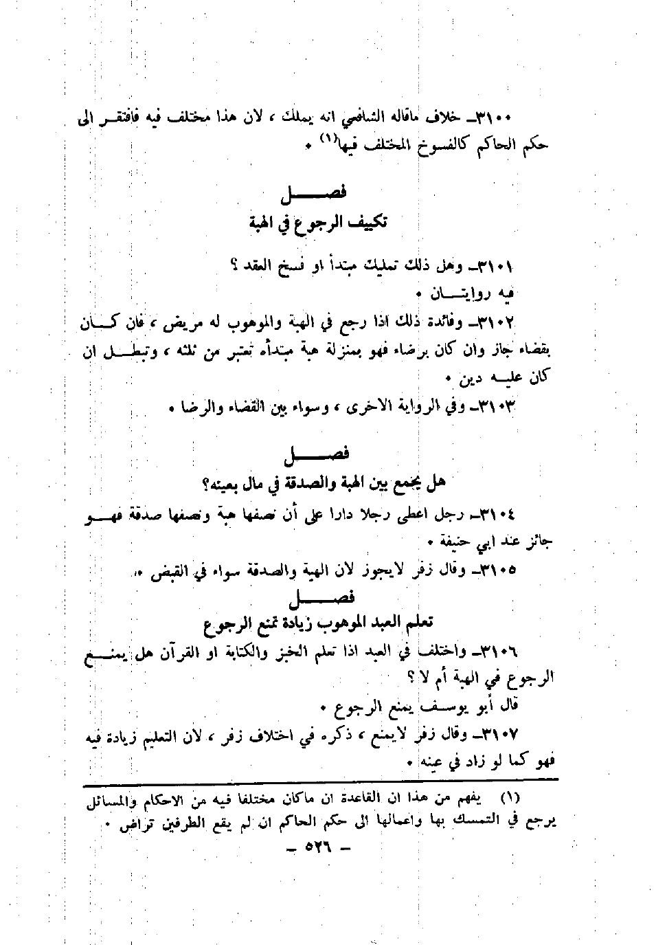3106 - واختلف في العبد إذا تعلم الخبز والكتابة أو القرآن هل يمنع الرجوع في الهبة أم لا؟