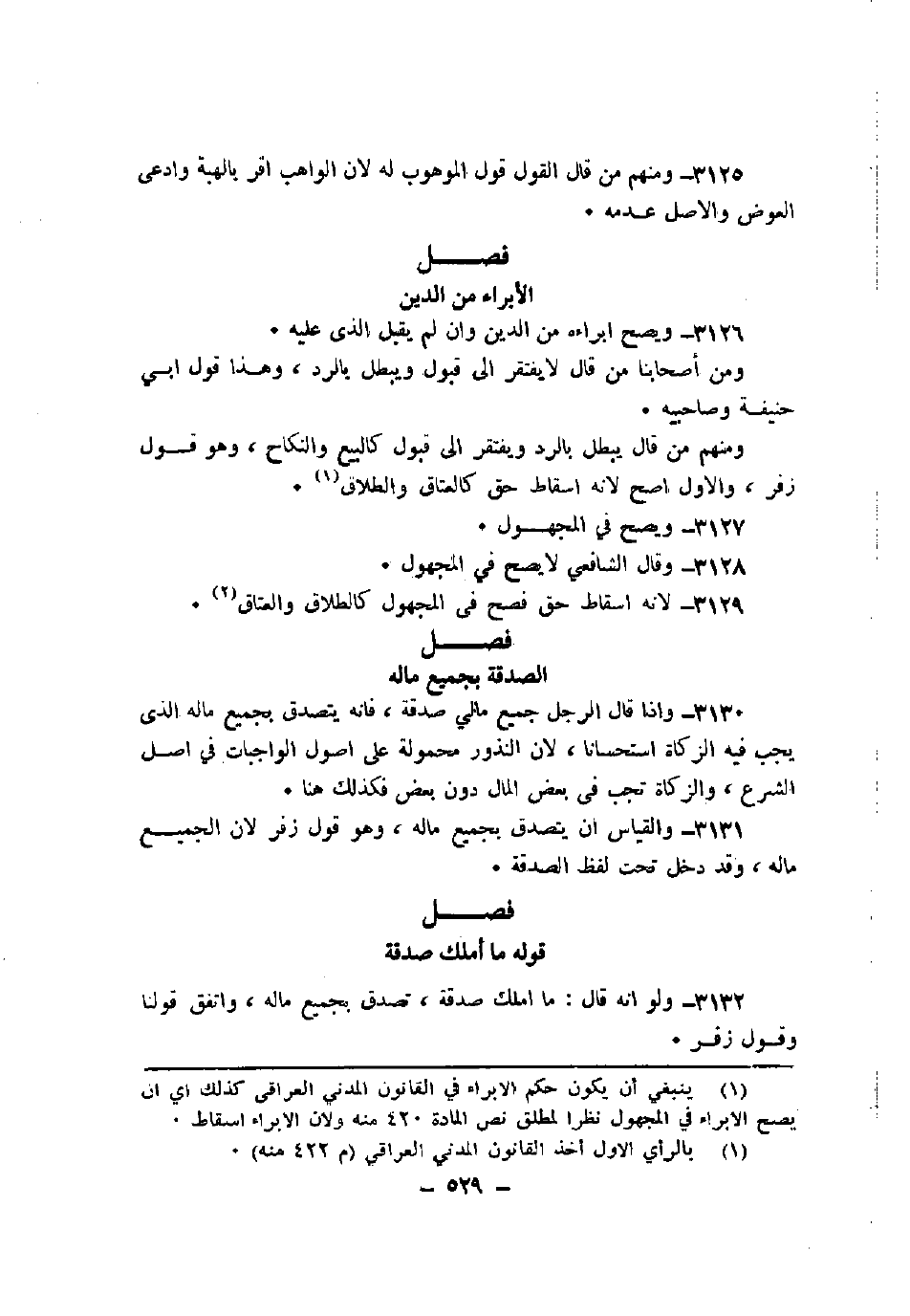 3132 - ولو أنه قال: ما أملك صدقة، تصدق بجميع ماله، واتفق قولنا وقول زفر.