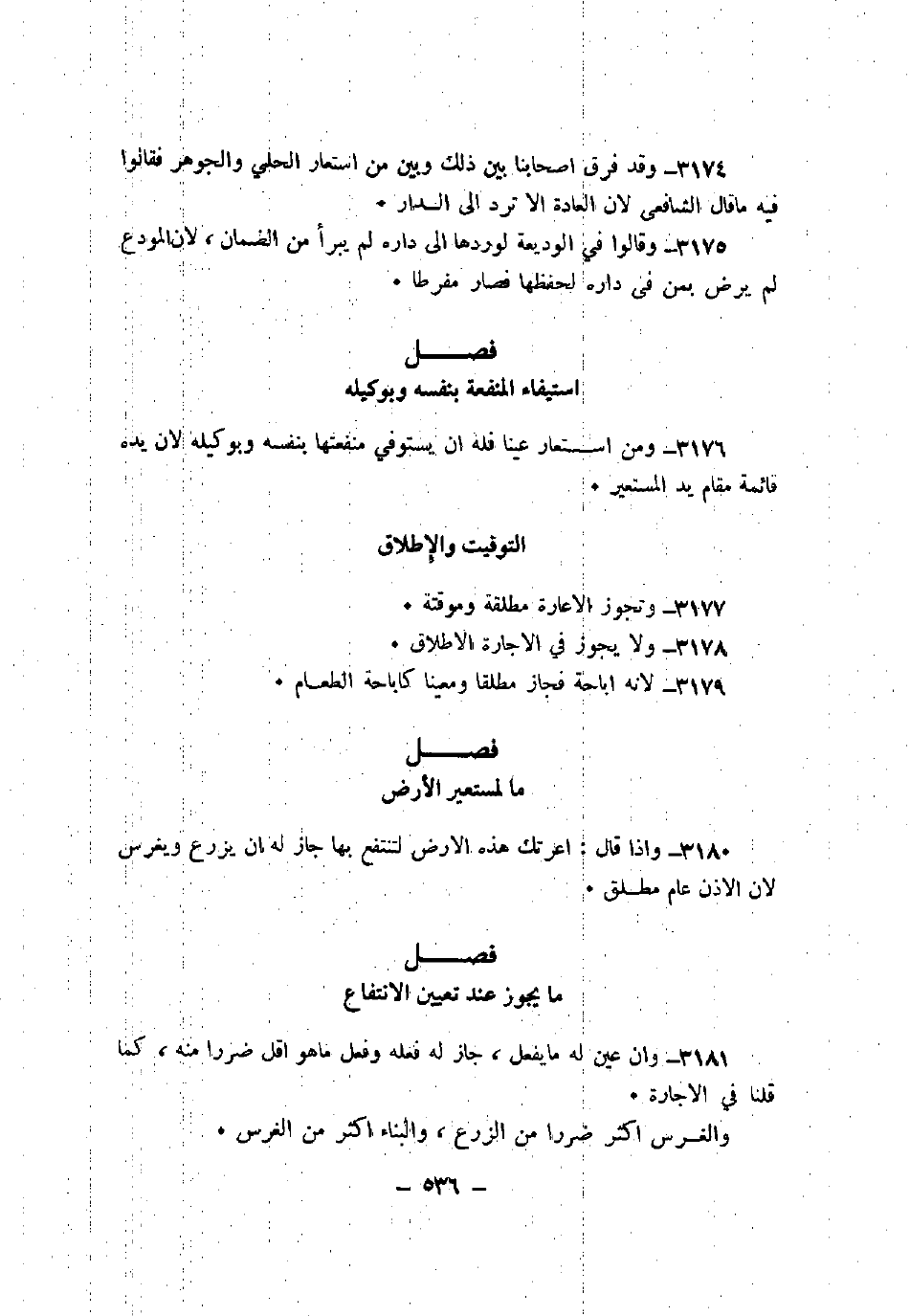 3176 - ومن استعار عينًا فله أن يستوفي منفعتها بنفسه وبوكيله لأن يده قائمة مقام يد المستعير.