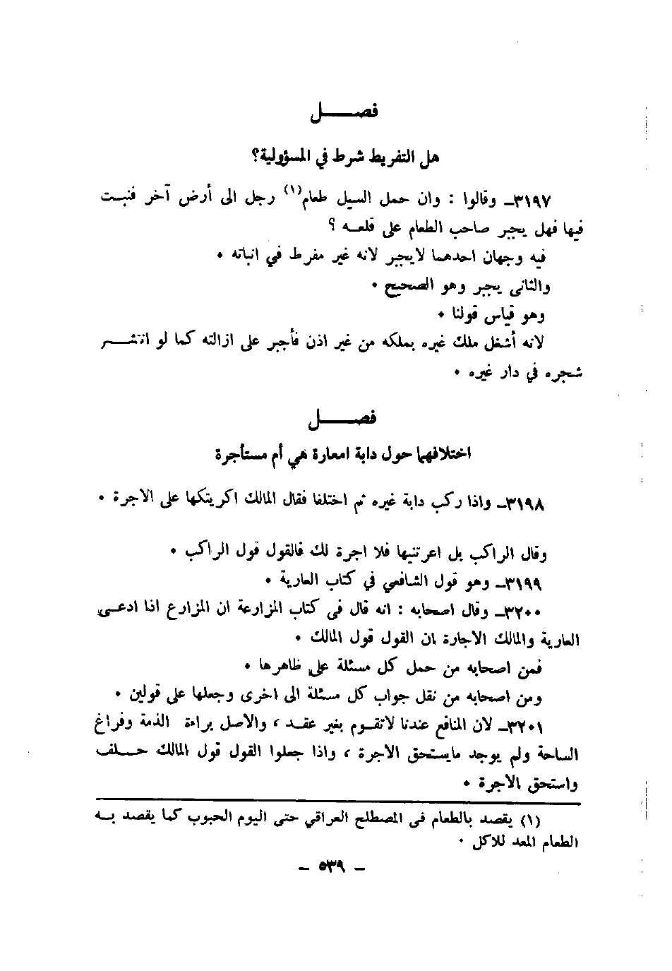 3200 - وقال أصحابه: أنه قال في كتاب المزارعة أن المزارع إذا ادعى العارية والمالك الإجارة إن القول قول المالك.