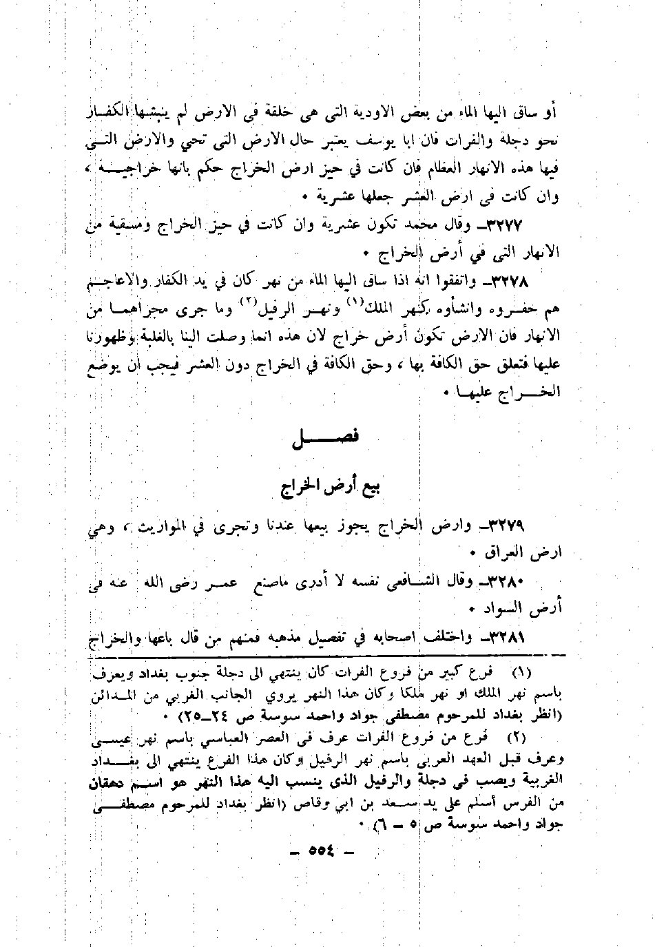3279 - وأرض الخراج يجوز بيعها عندنا وتجري في المواريث، وهي أرض العراق.