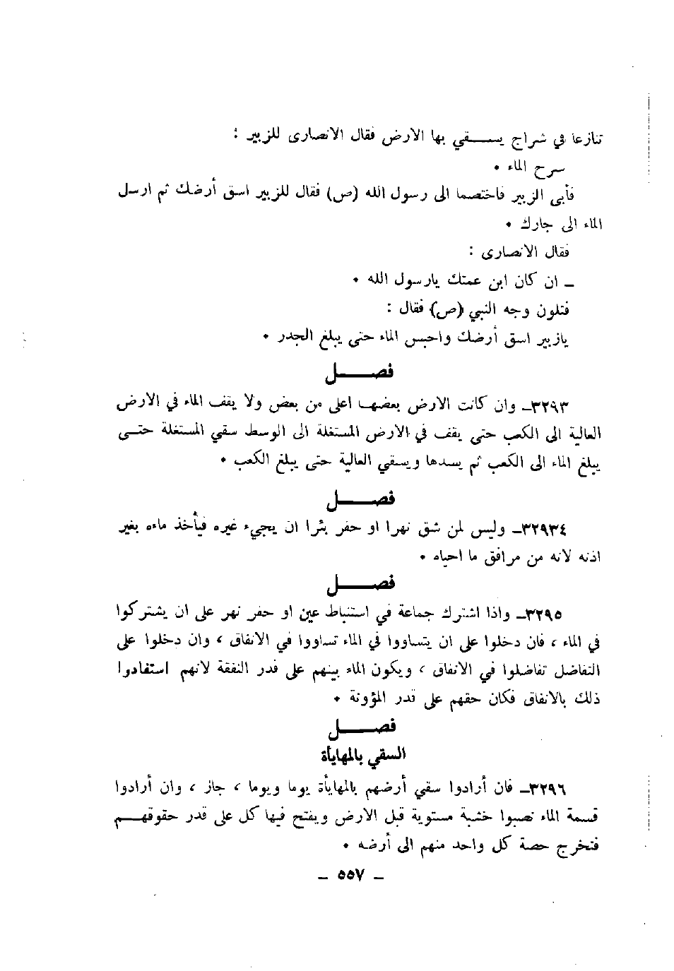 3295 - وإذا اشترك جماعة في استنباط عين أو حفر نهر على أن يشتركوا في الماء، فإن دخلوا على أن يتساووا في الماء تساوو في الإنفاق، وإن دخلوا على التفاضل تفاضلوا في الإنفاق، ويكون الماء بينهم على قدر النفقة لأنهم استفادوا ذلك بالإنفاق فكان حقهم على قدر المؤونة.