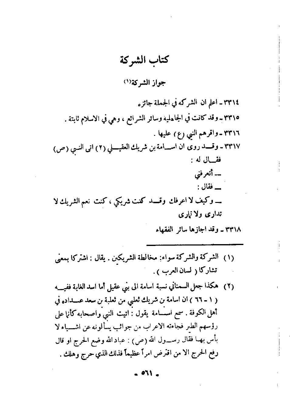 3314 - اعلم أن الشركة في الجملة جائزة.
