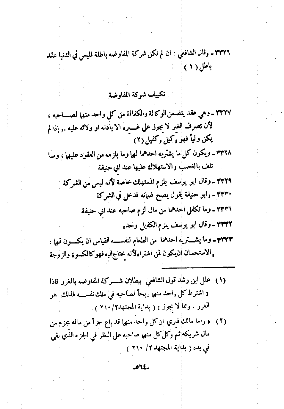 3326 - وقال الشافعي: إن لم تكن شركة المفاوضة باطلة فليس في الدنيا عقد باطل.