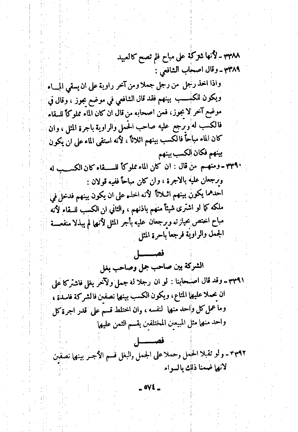 3390 - ومنهم من قال: إن كان الماء مملوكًا للسقاء كان الكسب له ويرجعان عليه بالإجرة، وإن كان مباحًا ففيه قولان: