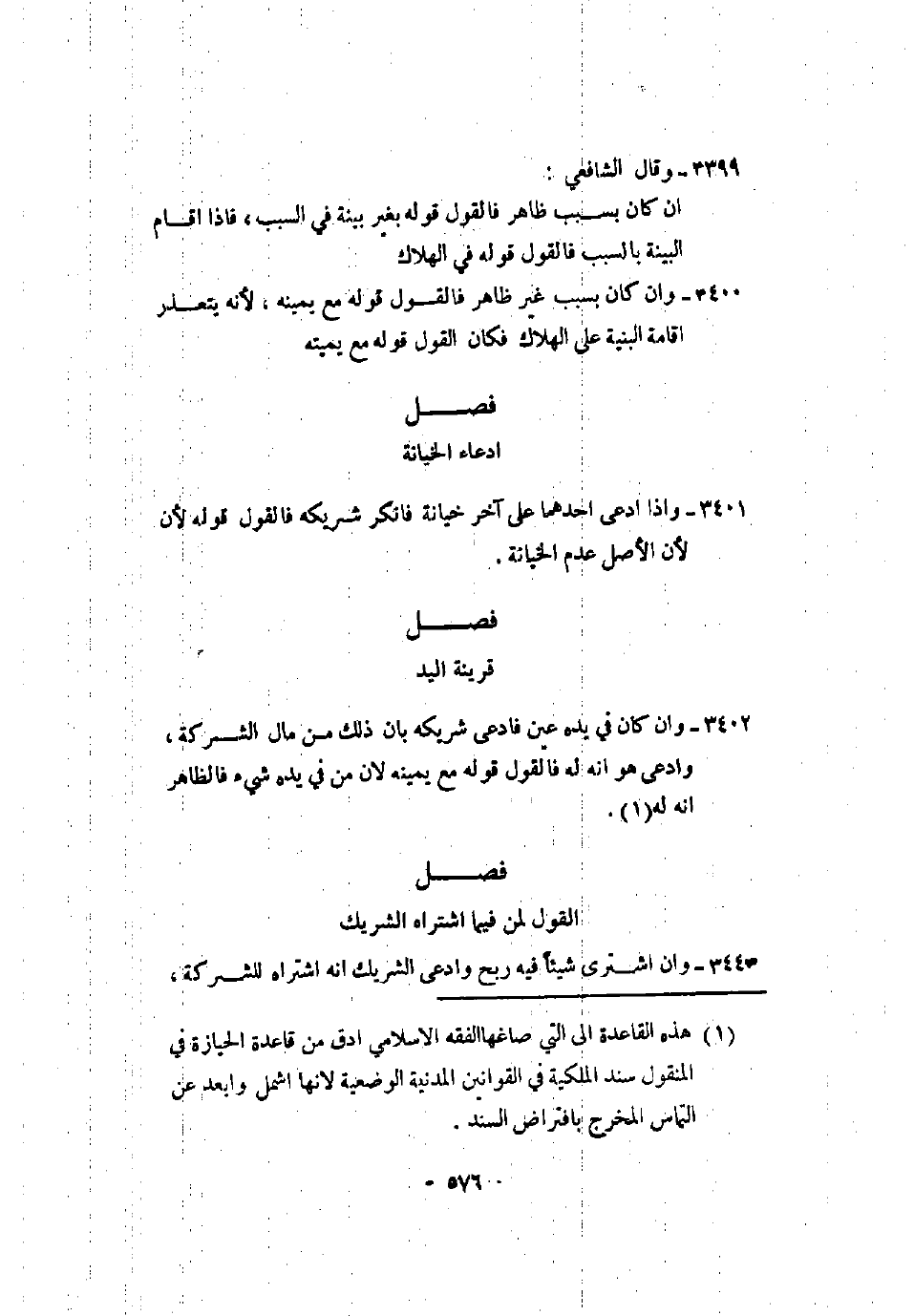 3402 - وإن كان في يده عين فادعى شريكه بأن ذلك من مال الشركة، وادعى هو أنه له فالقول قوله مع يمينه لأن من في يده شيء فالظاهر أنه له.