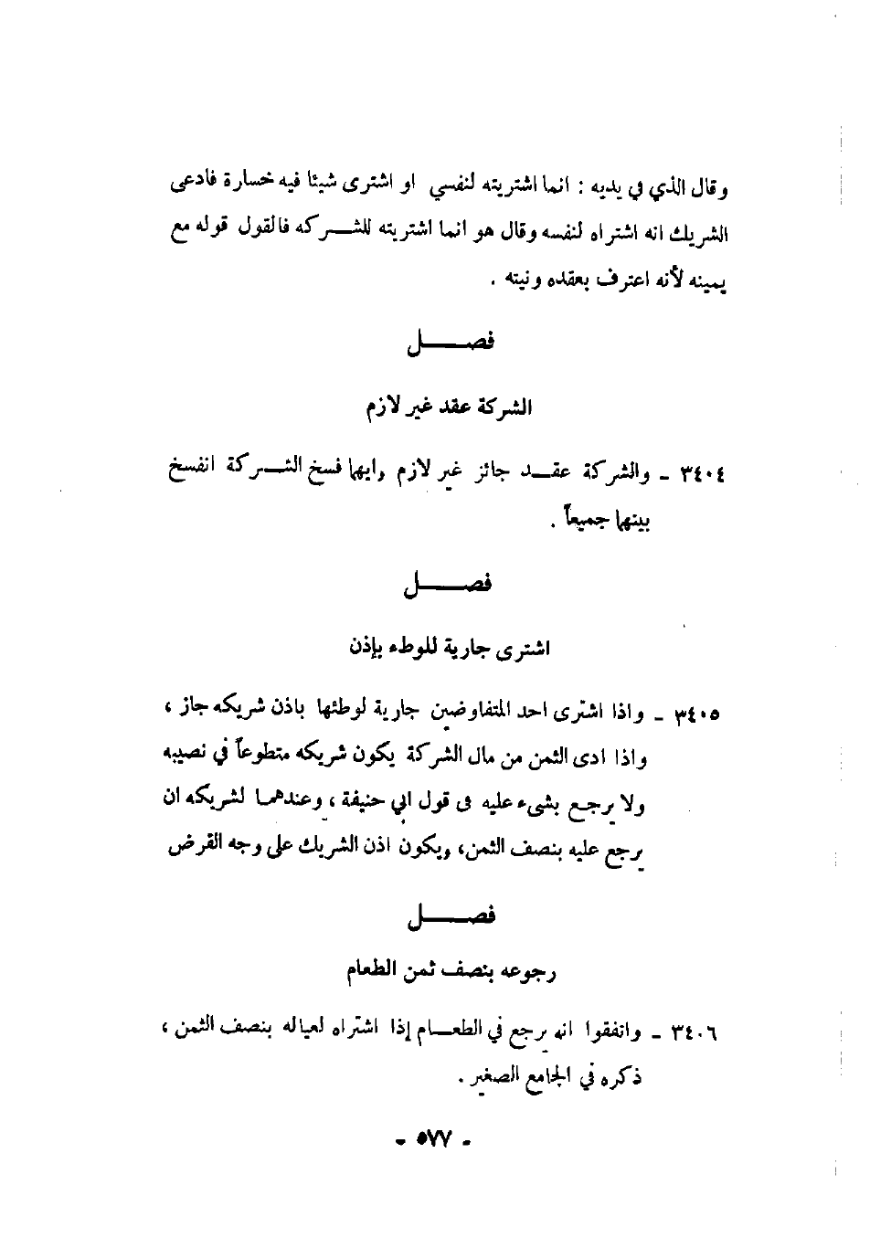 3404 - والشركة عقد جائز غير لازم، وأيهما فسخ الشركة انفسخ بينهما جميعًا.