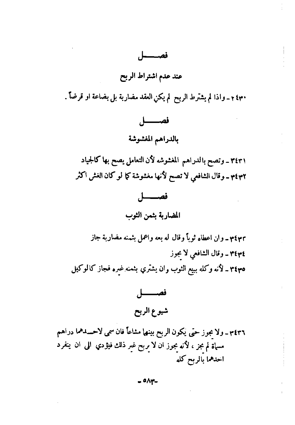 3436 - ولا يجوز حتى يكون الربح بينهما مشاعًا فإن سمي لأحدهما دراهم مسماة لم يجز، لأنه يجوز أن لا يربح غير ذلك فيؤدي إلى أن ينفرد أحدهما بالربح كله.