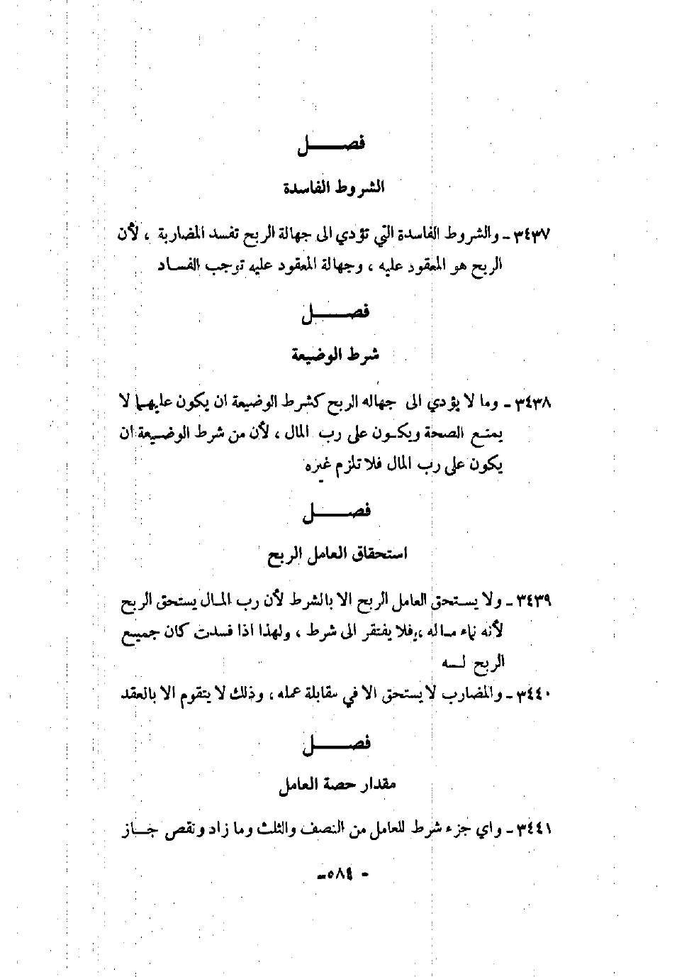 3440 - والمضارب لا يستحق إلا في مقابلة عمله، وذلك لا يتقوم إلا بالعقد.