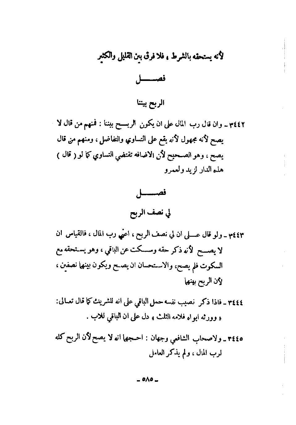 3445 - ولأصحاب الشافعي وجهان: أحدهما أنه لا يصح لأن الربح كله لرب المال، ولم يذكر العامل.