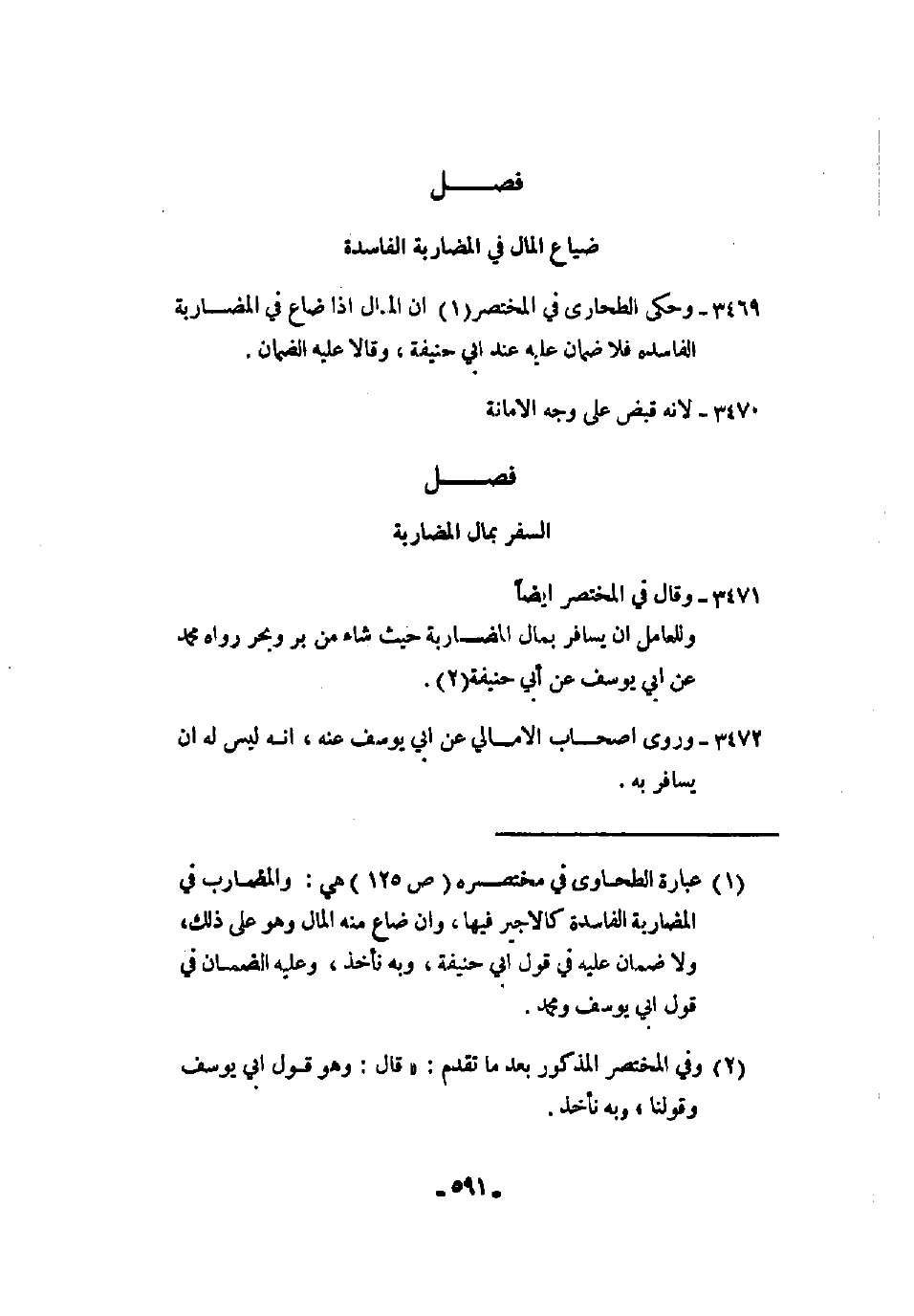3469 - وحكى الطحاوي في المختصر أن المال إذا ضاع في المضاربة الفاسدة فلا ضمان عليه عند أبي حنيفة، وقالا عليه الضمان.
