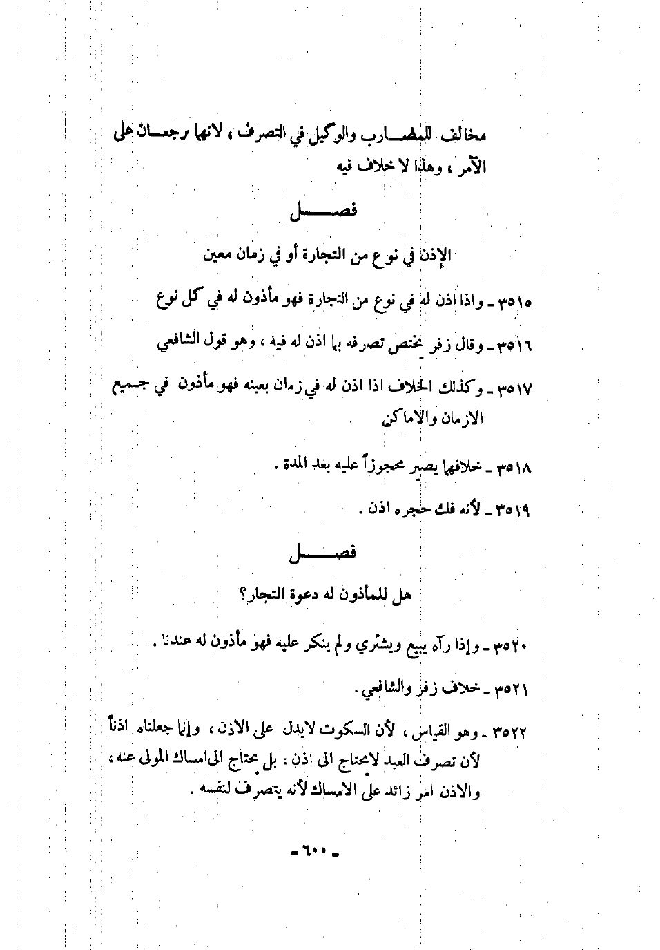 3515 - وإذا أذن له في نوع من التجارة فهو مأذون له في كل نوع.