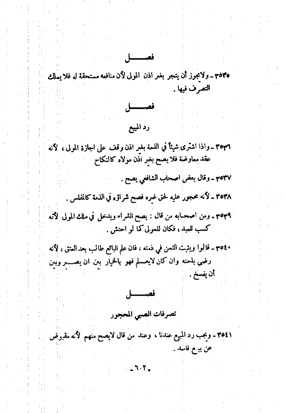 3535 - ولا يجوز أن يتجر بغير إذن المولى لأن منافعه مستحقة له فلا يملك التصرف فيها.