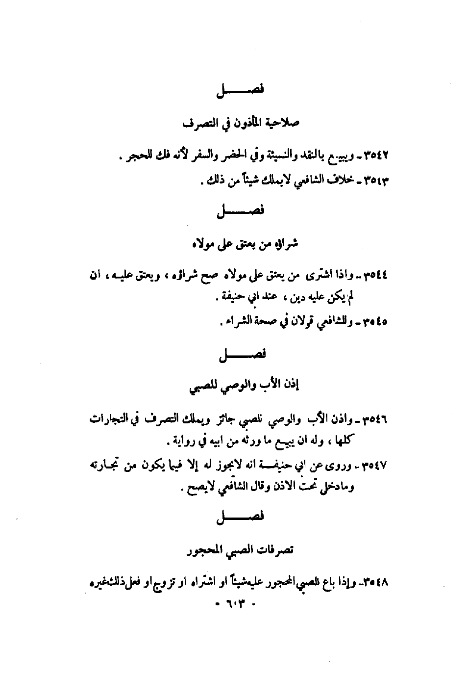 3546 - وإذن الأب والوصي للصبي جائز ويملك التصرف في التجارات كلها، وله أن يبيع ما ورثه من أبيه في رواية.
