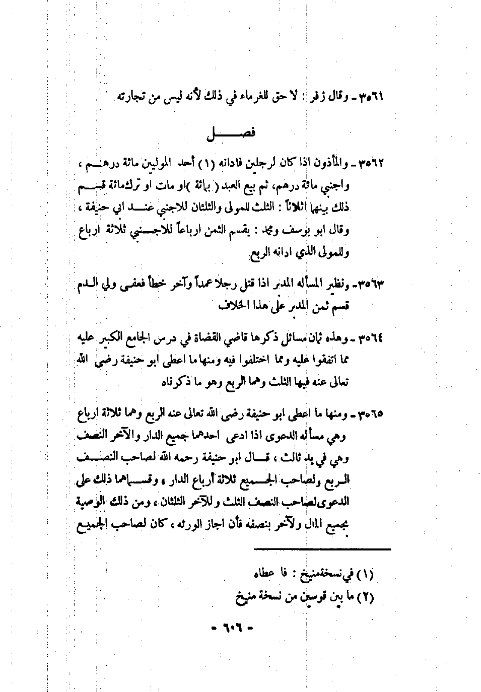 3564 - وهذه ثمان مسائل ذكرها قاضي القضاة في درس الجامع الكبير عليه مما اتفقوا عليه ومما اختلفوا فيه ومنها ما أعطى أبو حنيفة رضي الله تعالى عنه فيها الثلث وهما الربع وهو ما ذكرناه.
