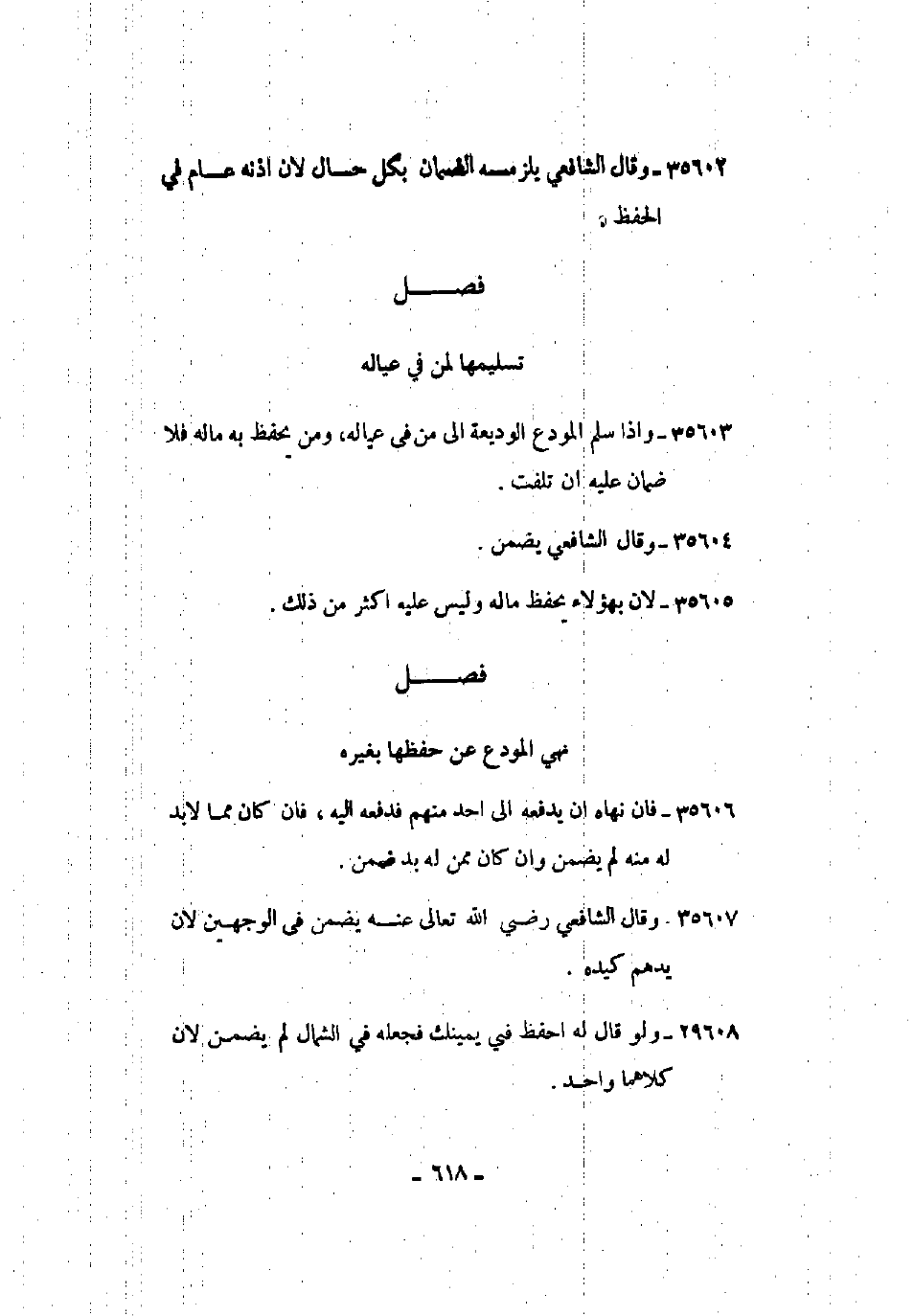 3603 - وإذا سلم المودع الوديعة إلى من في عياله، ومن يحفظ به ماله فلا ضمان عليه إن تلفت.