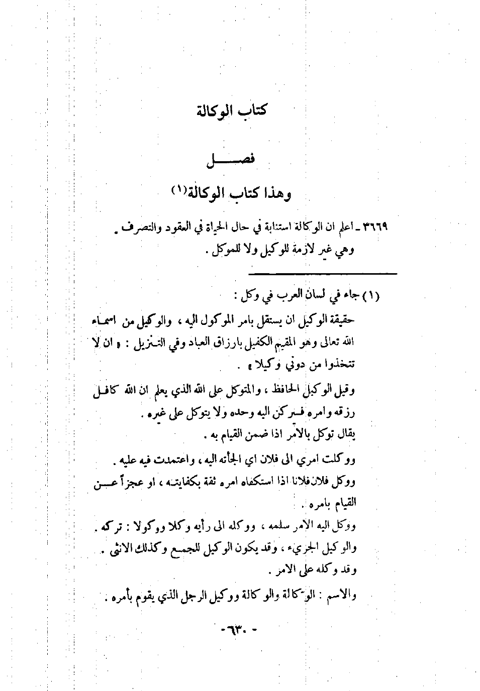 3669 - اعلم أن الوكالة استنابة في حال الحياة في العقود والتصرف.