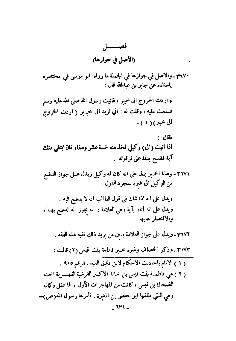 3670 - والأصل في جوازها في الجملة ما رواه أبو موسى في مختصره بإسناده عن جابر بن عبد الله قال: