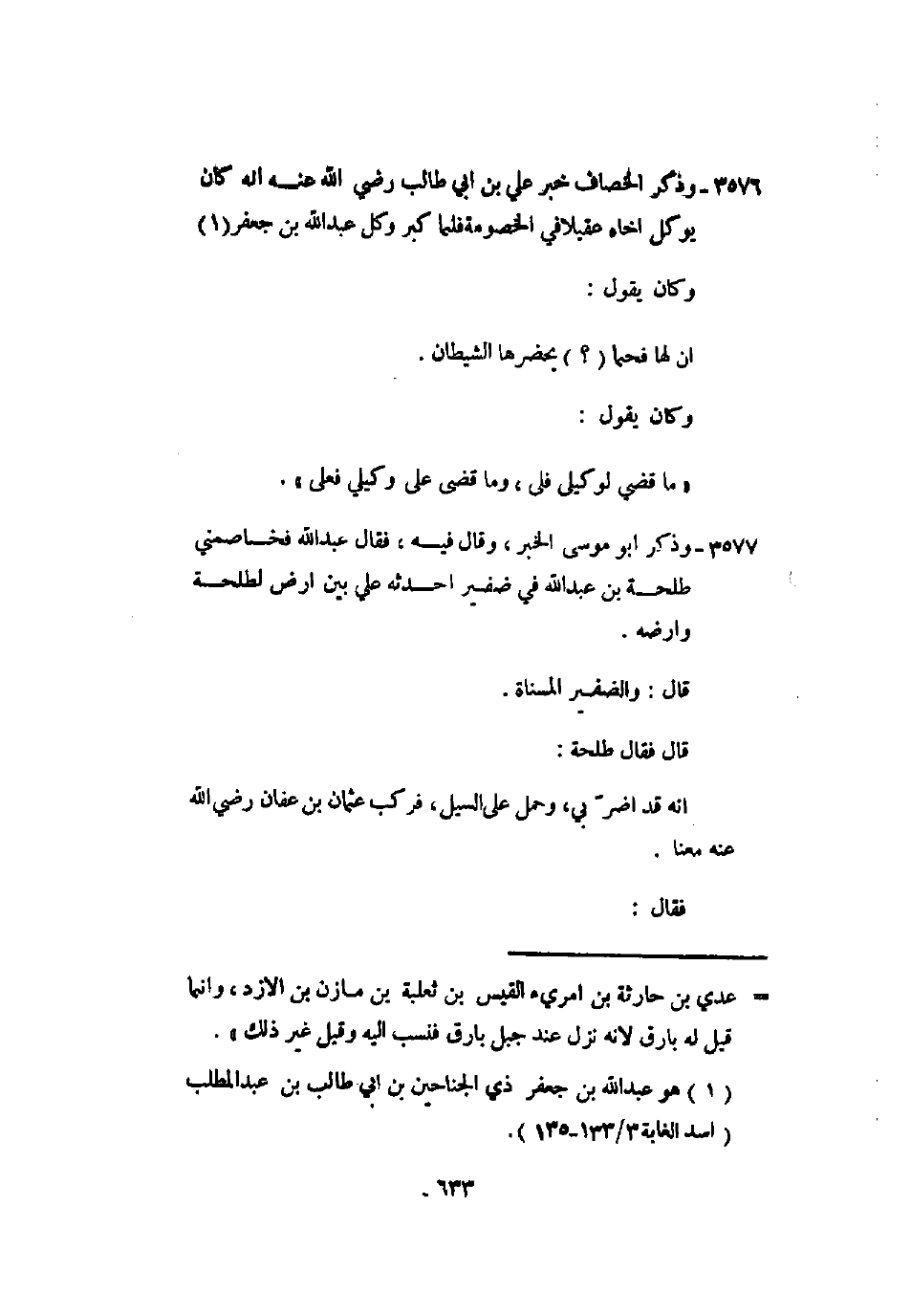 3676 - وذكر أبو موسى الخبر، وقال فيه، فقال عبد الله فخاصمني طلحة بن عبد الله في ضفير أحدثه علي بين أرض لطلحة وأرضه.