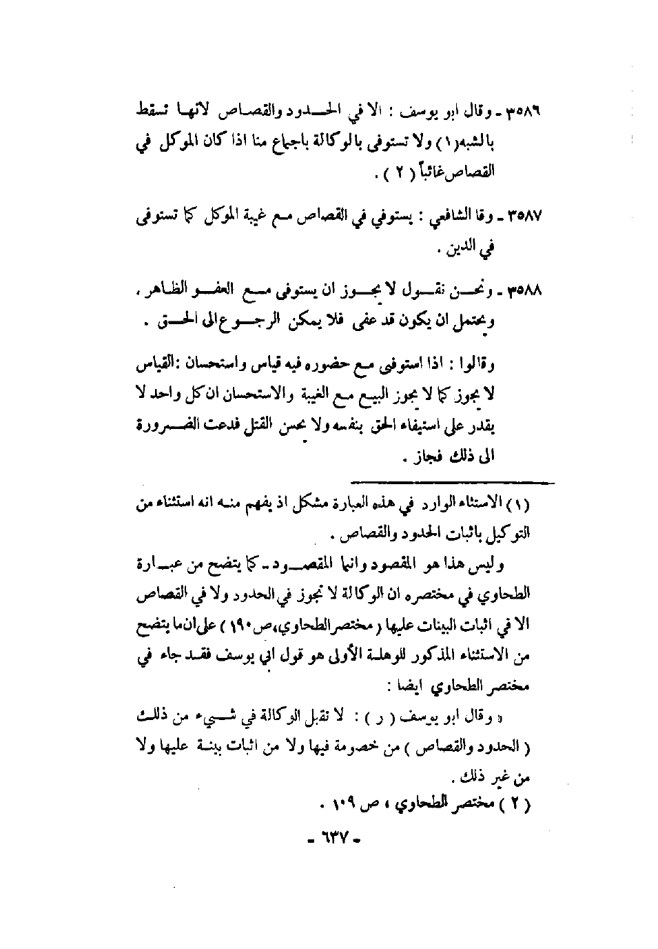 3685 - وقال أبو يوسف: إلا في الحدود والقصاص لأنها تسقط بالشبه، ولا تستوفي بالوكالة بإجماع منا إذا كان الموكل في القصاص غائبًا.