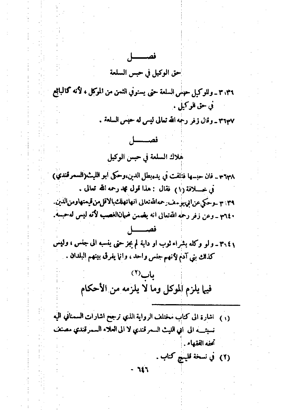3733 - وللوكيل حبس السلعة حتى يستوفي الثمن من الموكل؛ لأنه كالبائع في حق الوكيل.