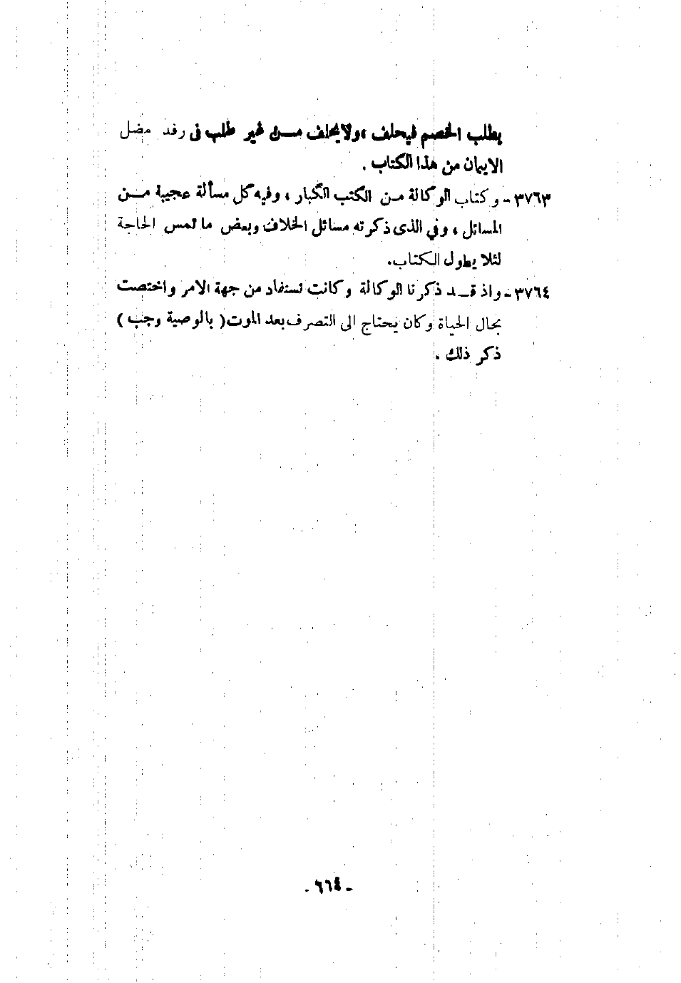 3853 - وكتاب الوكالة من الكتب الكبار، وفيه كل مسألة عجيبة من المسائل، وفي الذي ذكرته مسائل الخلاف وبعض ما تمس الحاجة لئلا يطول الكتاب.