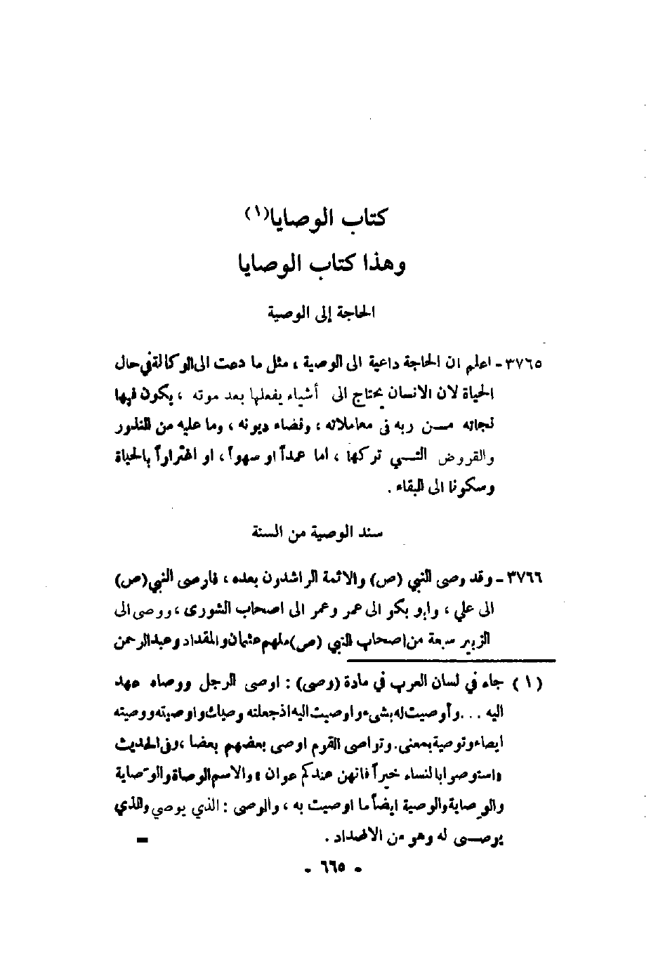 3855 - اعلم أن الحاجة داعية إلى الوصية، مثل ما دعت إلى الوكالة في حال الحياة لأن الإنسان يحتاج إلى أشياء يفعلها بعد موته، يكون فيها نجاته من ربه في معاملاته، وقضاء ديونه، وما عليه من النذور والقروض التي تركها، إما عمدًا أو سهوًا، أو اغترارًا بالحياة وسكونًا إلى البقاء.