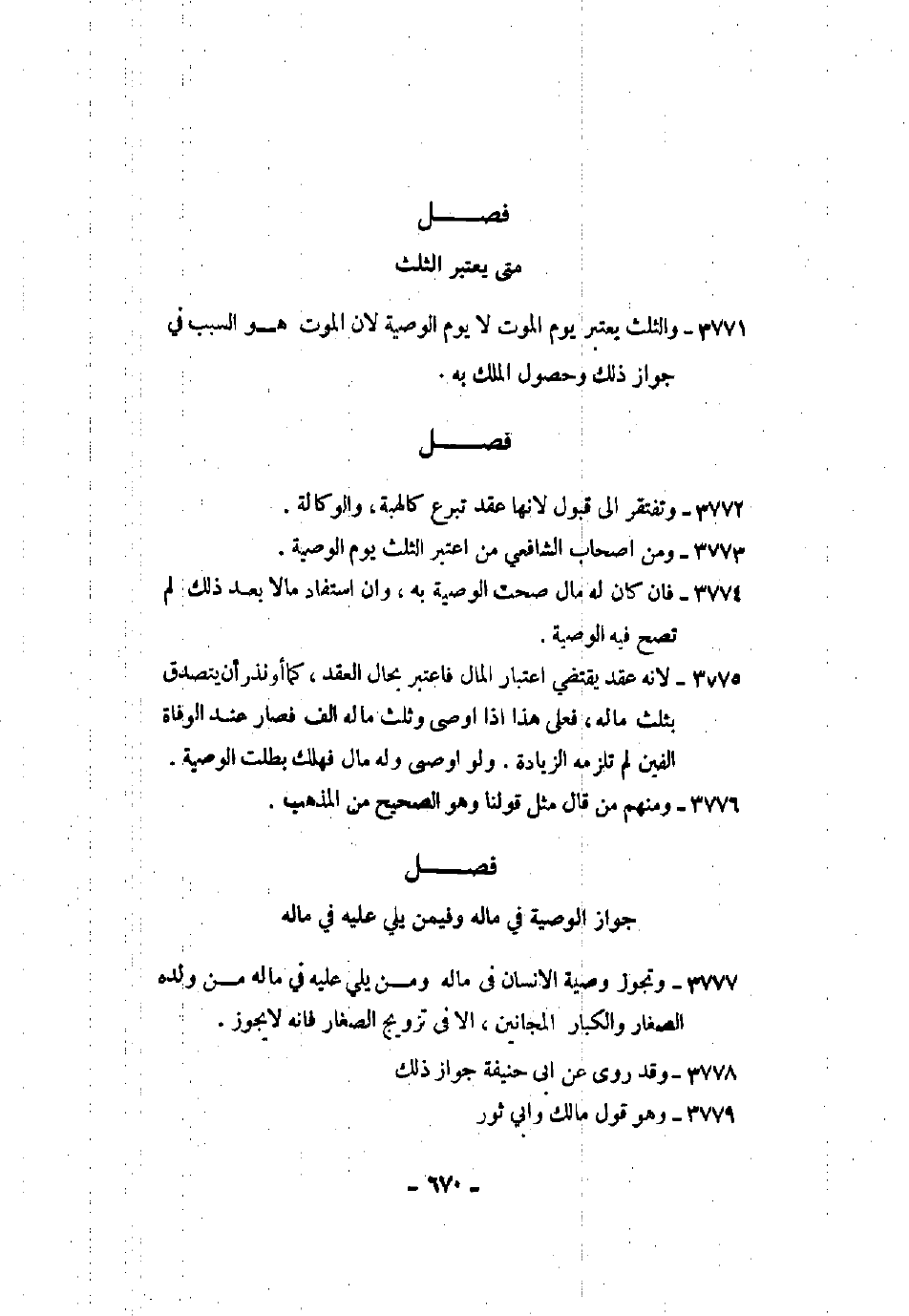 3861 - والثلث يعتبر يوم الموت لا يوم الوصية لأن الموت هو السبب في جواز ذلك وحصول الملك به.