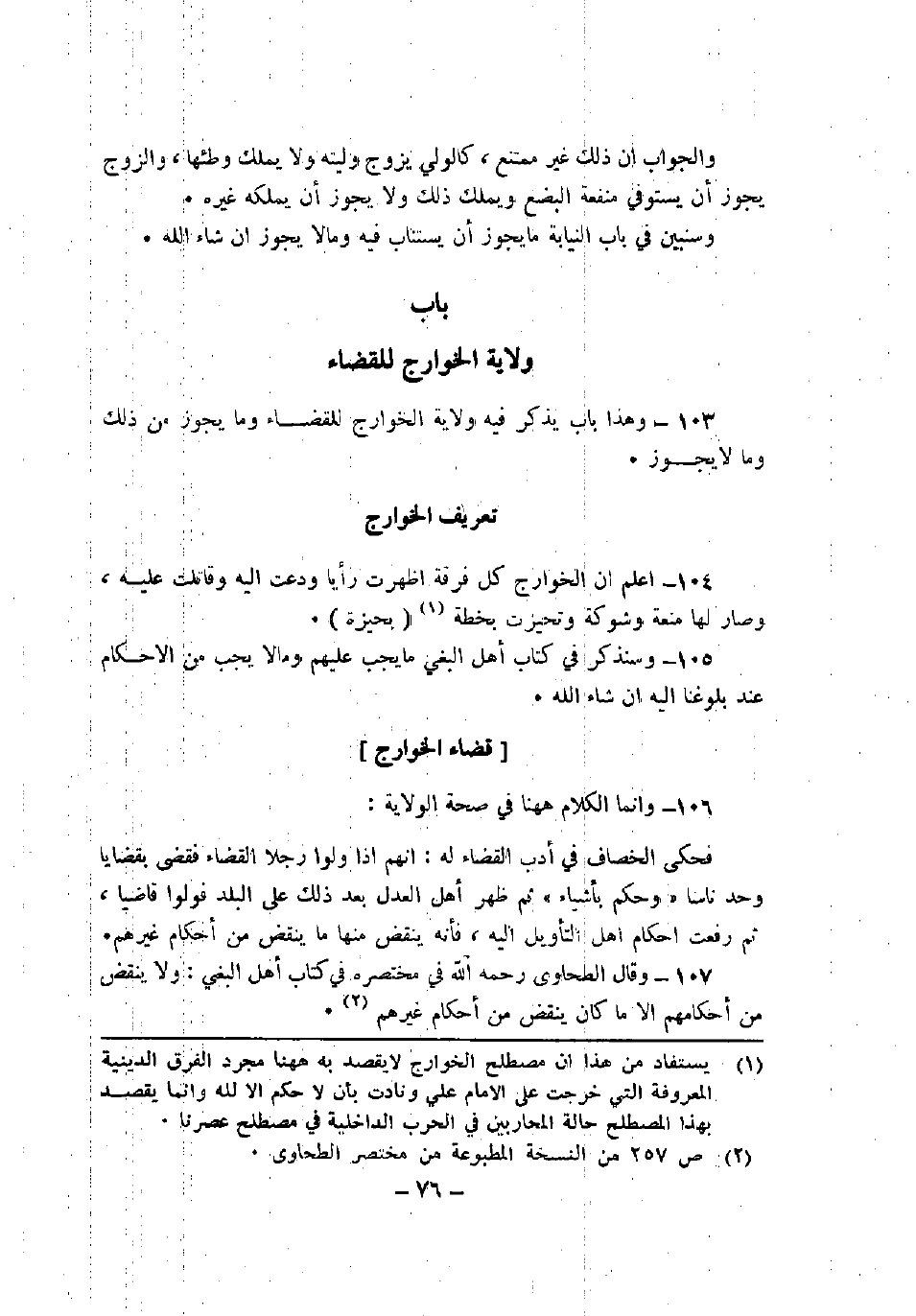104 - اعلم أن الخوارج كل فرقة أظهرت رأيًا ودعت إليه وقاتلت عليه، وصار لها منعة وشوكة وتحيزت بخطة (بحيزة).