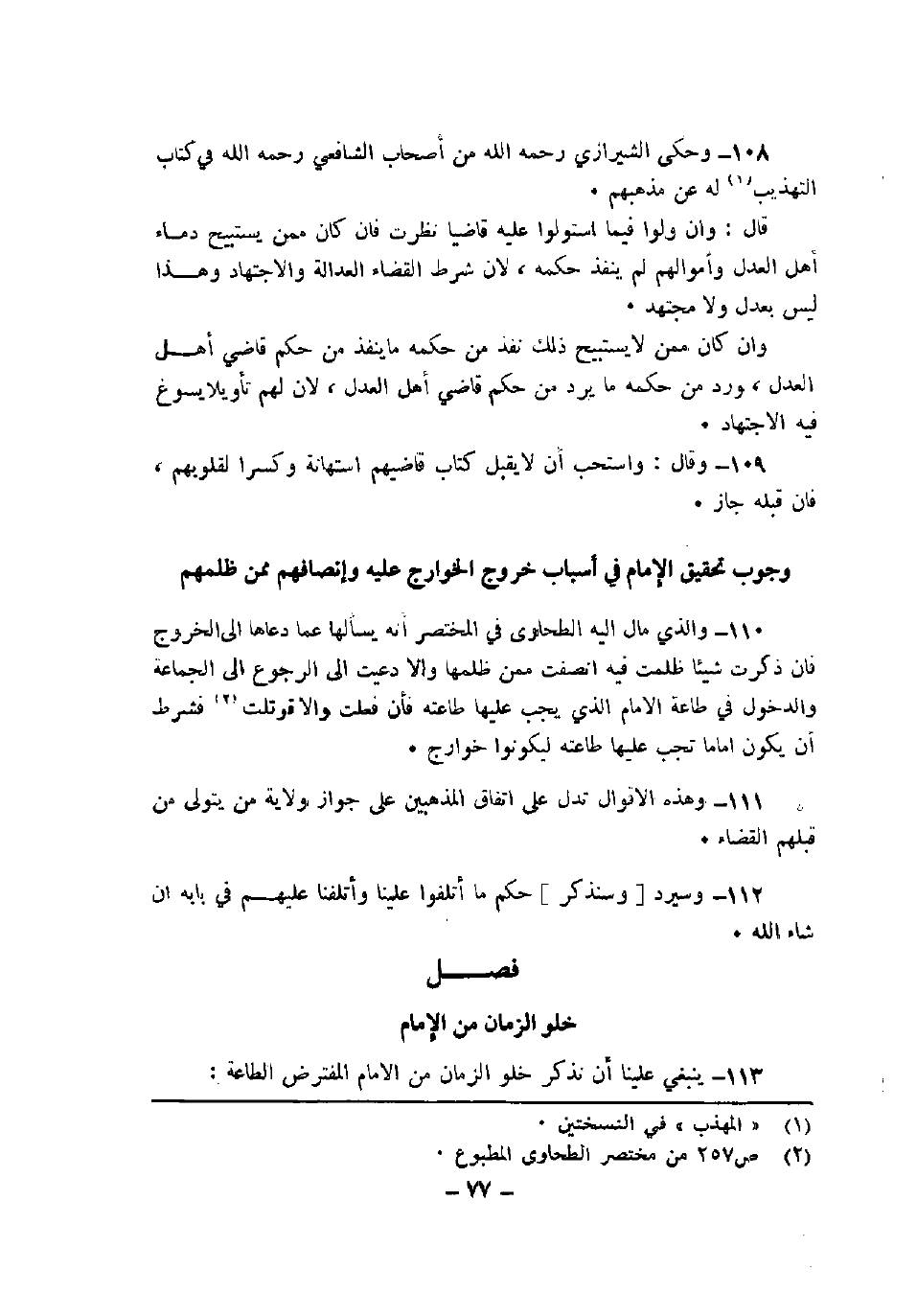 108 - وحكى الشيرازي رحمه الله من أصحاب الشافعي رحمه الله في كتاب التهذيب له عن مذهبهم.
