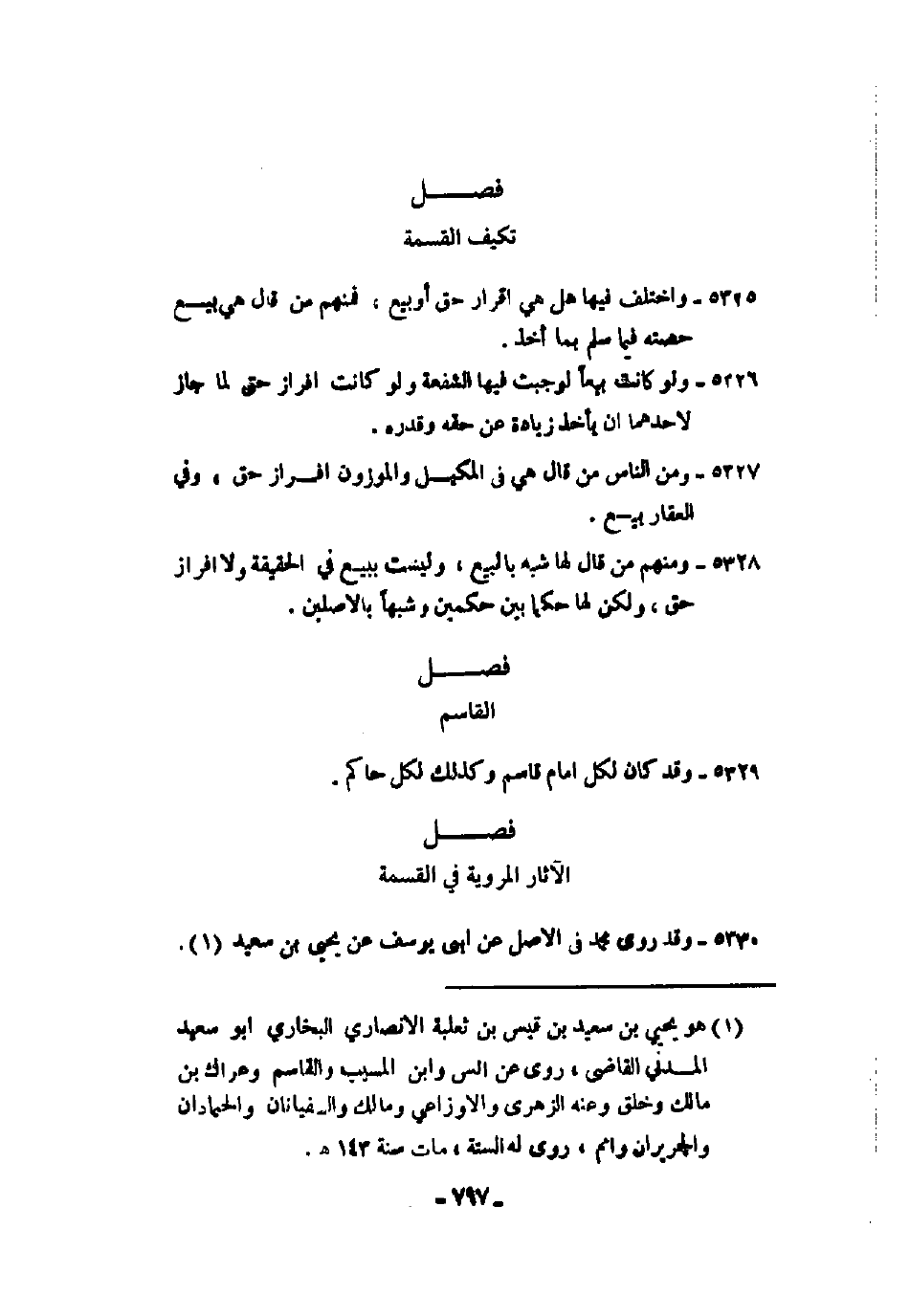 5328 - ومنهم من قال لها شبه بالبيع، وليست ببيع في الحقيقة ولا إفراز حق، ولكن لها حكماً بين حكمين وشبهاً بالأصلين.