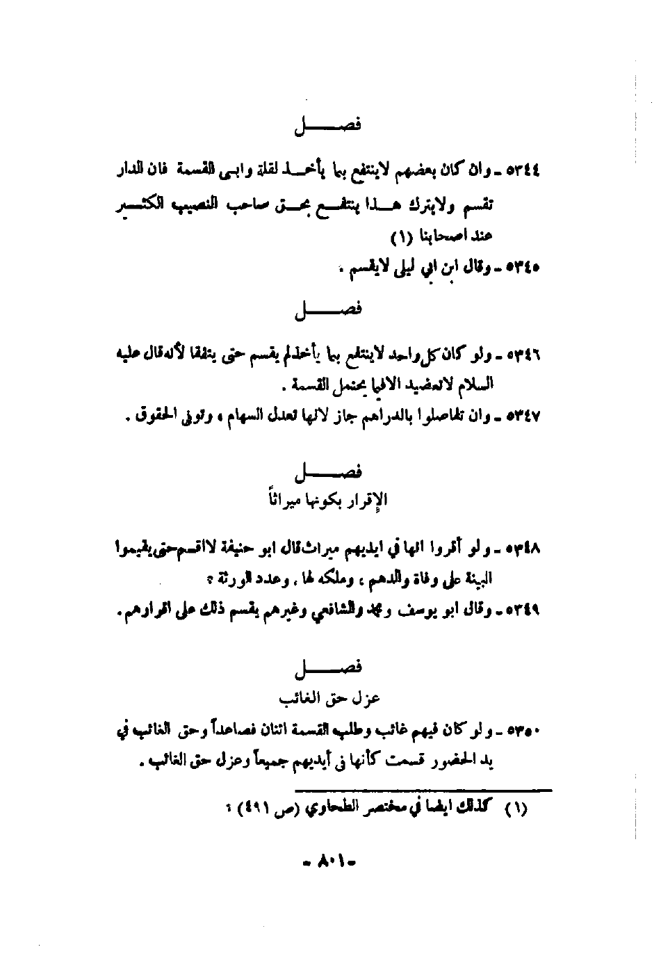 5350 - ولو كان فيهم غائب وطلب القسمة اثنان فصاعداً وحق الغائب في يد الحضور قسمت كأنها في أيديهم جميعاً وعزل حق الغائب.