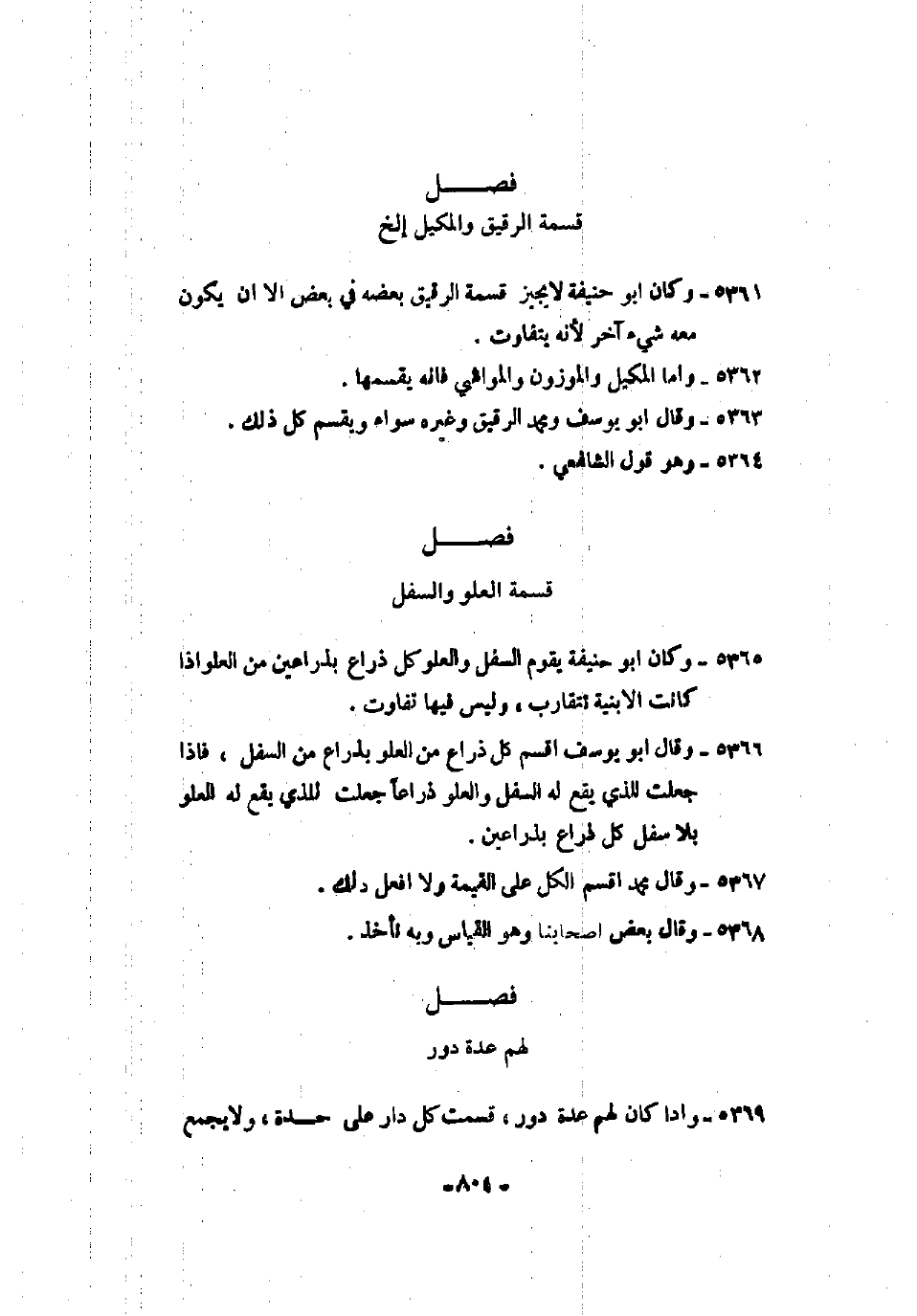 5366 - وقال أبو يوسف أقسم كل ذراع من العلو بذراع من السفل، فإذا جعلت الذي يقع له السفل والعلو ذراعاً جعلت للذي يقع له العلو بلا سفل كل ذراع بذراعين.