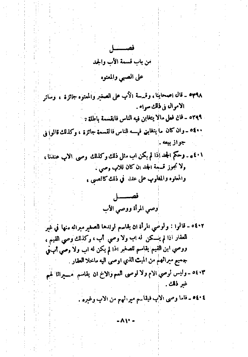 5403 - وليس لوصي الأم ولا لوصي العم والأخ أن يقاسم ميراثاً لهم غير ذلك.