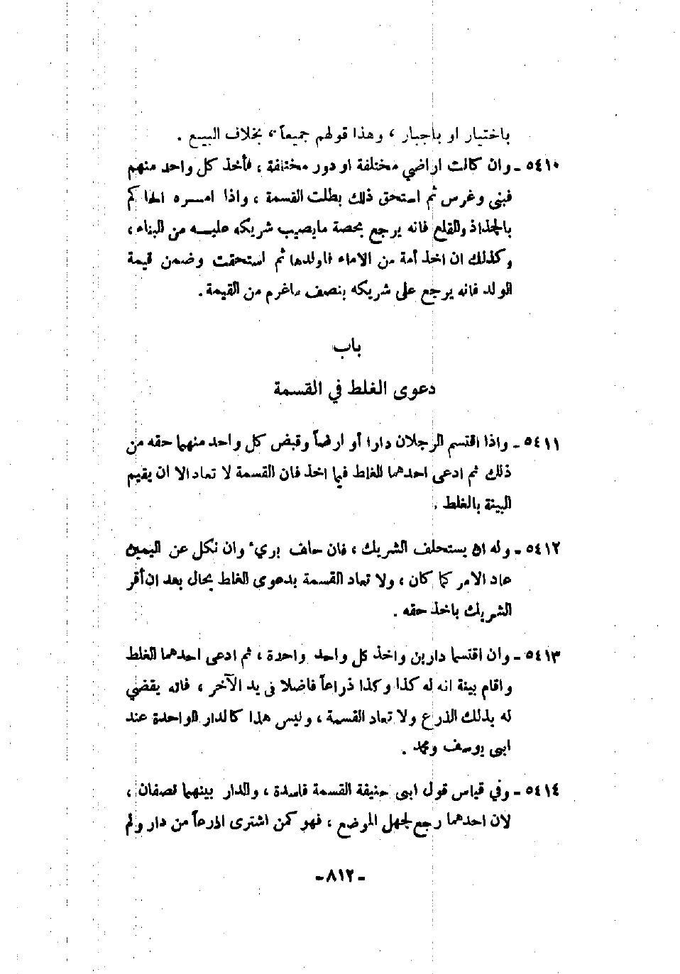 5414 - وفي قياس قول أبي حنيفة القسمة فاسدة، والدار بينهما نصفان، لأن أحدهما رجع لجهل الموضع، فهو كمن اشترى اذرعاً من دار ولم