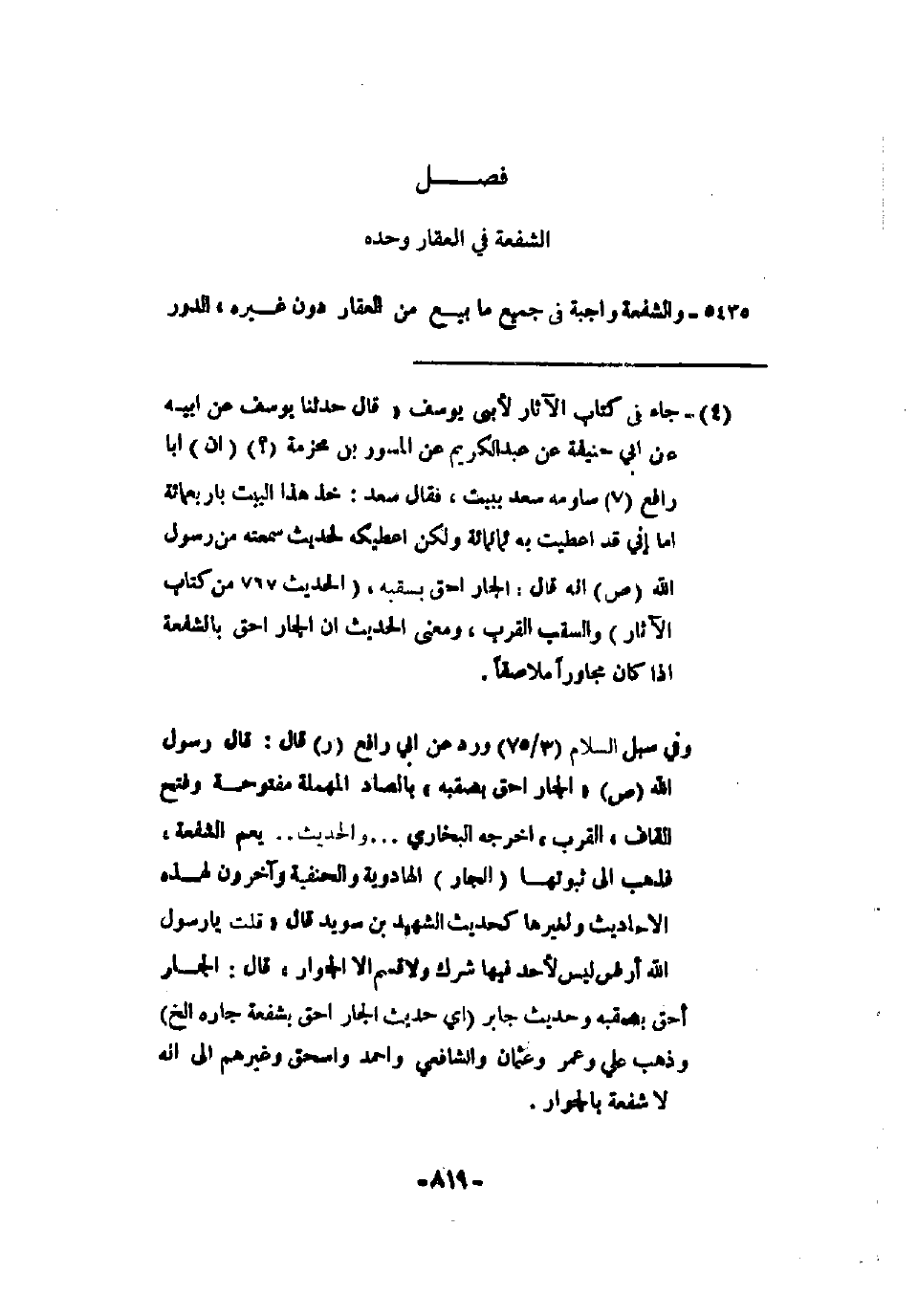 5435 - والشفعة واجبة في جميع ما بيع من العقار دون غيره، الدور