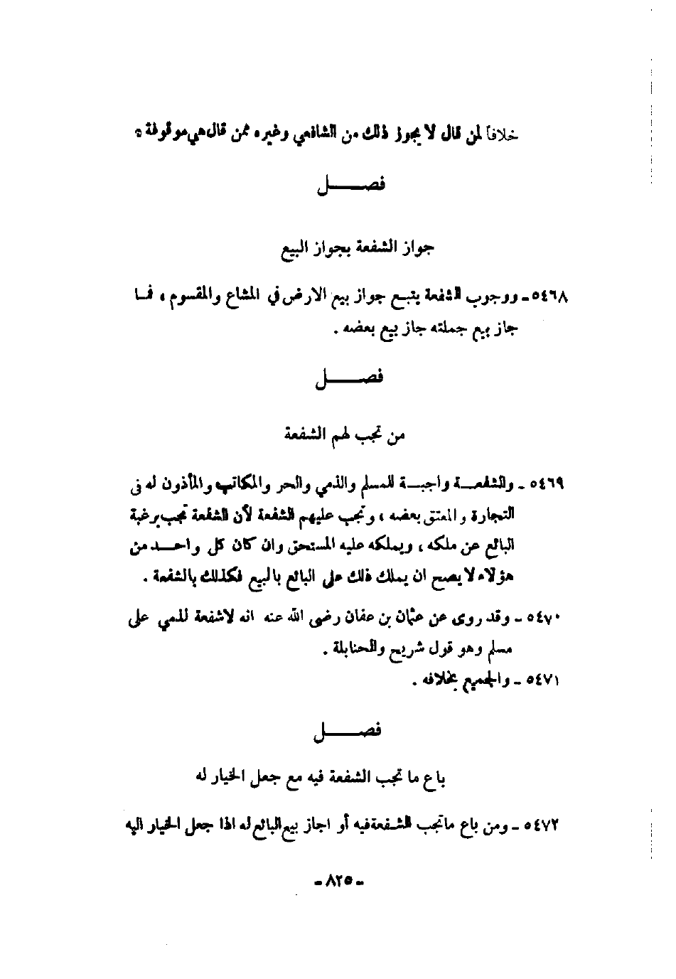 5470 - وقد روى عن عثمان بن عفان -رضي الله عنه- أنه لا شفعة لذمي على مسلم وهو قول شريح والحنابلة.