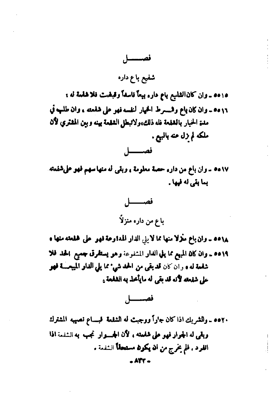 5520 - الشريك إذا كان جاراً ووجبت له الشفعة فباع نصيبه المشترك وبقي له الجوار فهو على شفعته، لأن الجوار تجب به الشفعة إذا انفرد، فلم يخرج من أن يكون مستحقاً للشفعة.